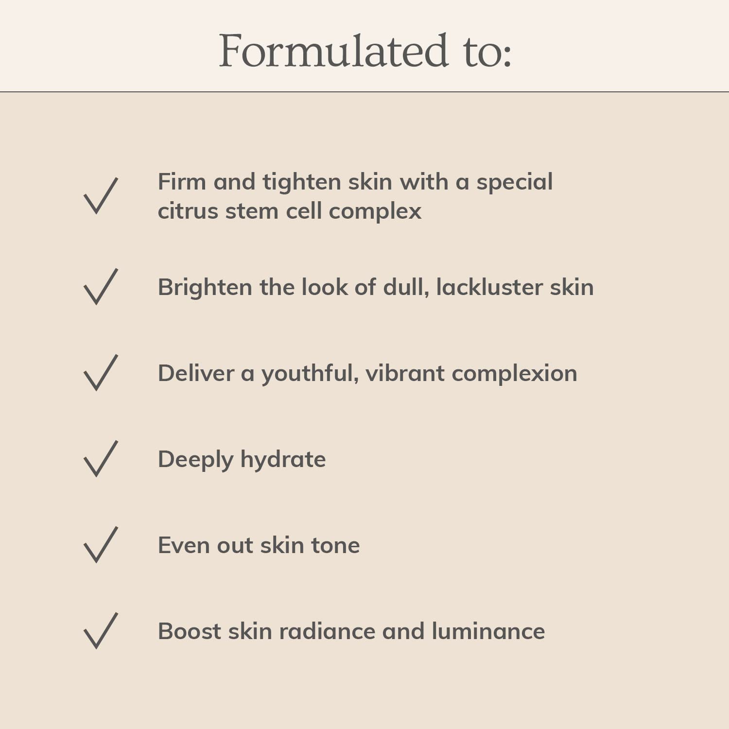 - Formulated with citrus derived stem cells, uva ursi, licorice root and amla berry to deliver youthful, vibrant and radiant looking skin