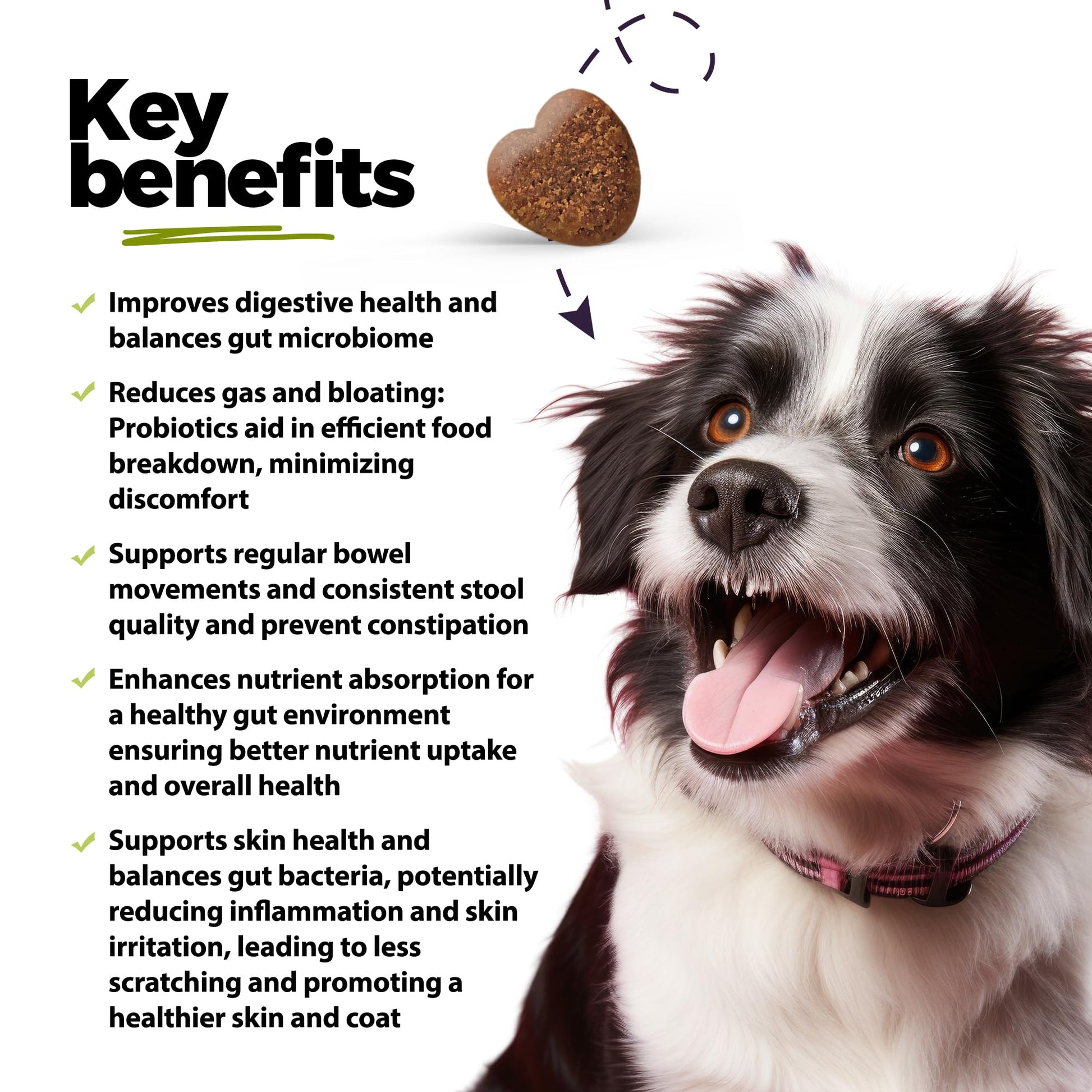 • VETERINARIAN RECOMMENDED: Our probiotic chews for dogs are developed by holistic veterinarians, who are experts in the field of gastrointestinal issues, and endorsed by leading veterinarians. Our soft chews for dogs assure you of a high-quality product that is safe and effective for dogs of all breeds, sizes, and ages. With over 25 years of experience, trust us to care for your pet's health, ensuring a happy belly and a wagging tail.