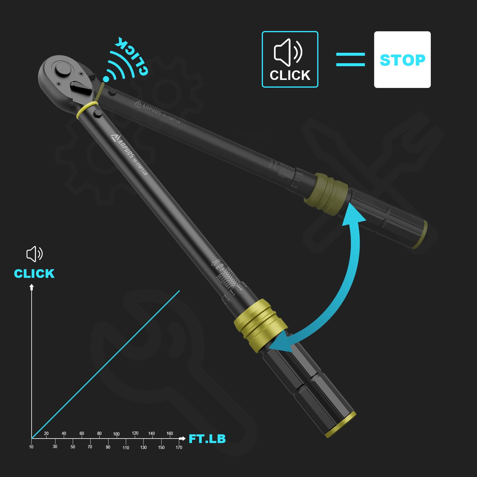 ANPUDS 1/2-Inch Drive Click Torque Wrench, 10-170 Ft-Lb/13.6-230.5 Nm, Dual-Direction Torque Wrench, 72-Tooth Dual Range Scales Torque Wrench with Quick Release Reversible Head for Motorcycle, Car