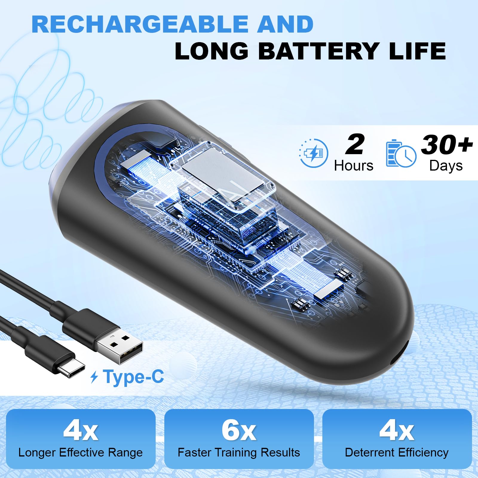 - Long-Lasting Battery Life – Only 2 Hours to Charge: Enjoy up to 30 days of use on a single charge. The built-in 1000mAh large capacity lithium battery fully charges in just 2 hours, making this pet gentle anti barking device more convenient and reliable than other bark deterrents.
