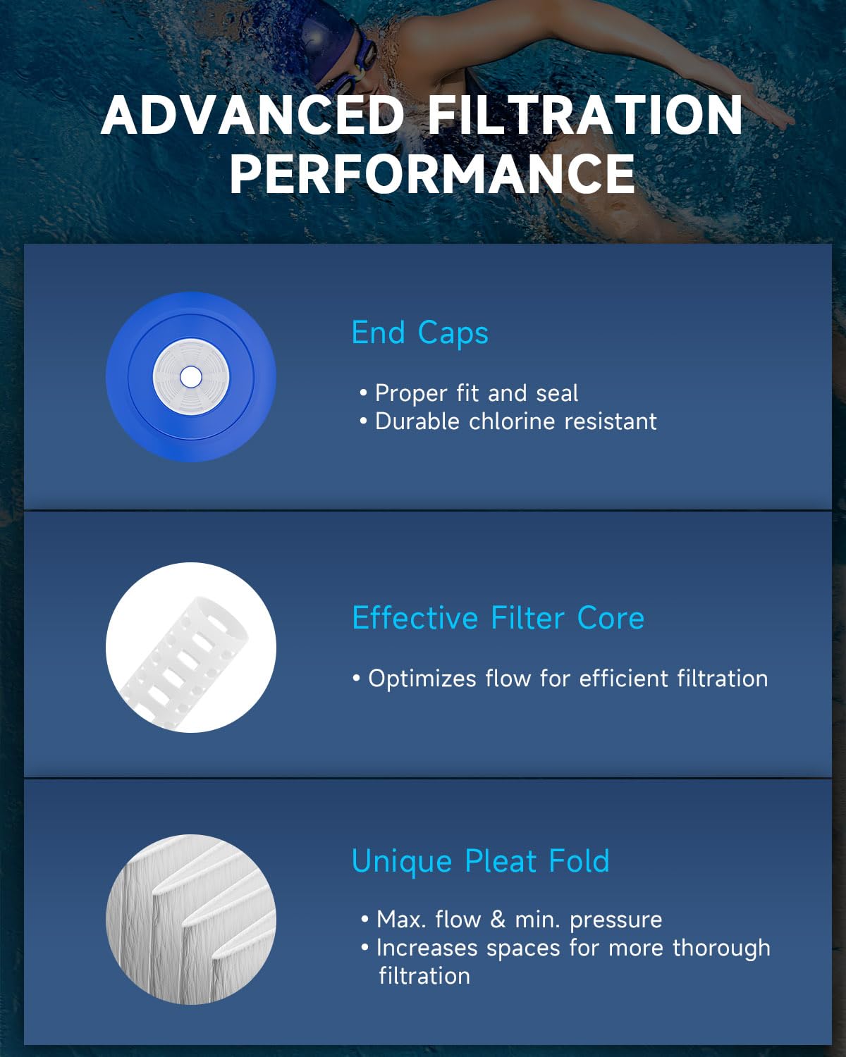 - š§ćGreat Filtration PerformancećInnovated "Dirt-Locking" technology makes the fabric filter much more contaminants than regular fabric. AQUALTRA hot tub filter cartridges effectively reduces hair, leaves, dust, sediment, sand, etc., providing you a clean and comfortable swimming space to enjoy your spa or pool.