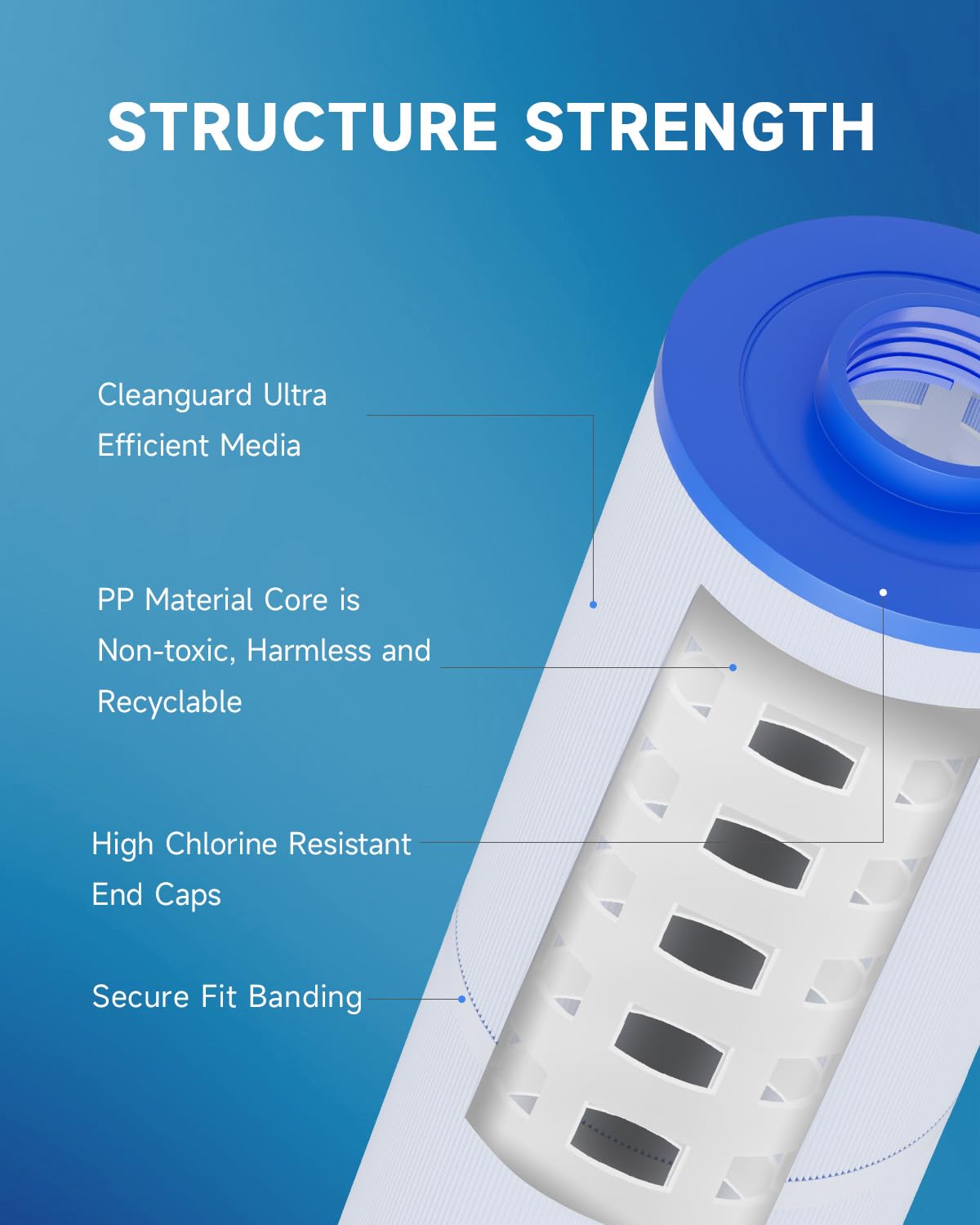 - 💧【NSF Certified Material】The PWW50L spa filter is composed of PET composite filter, high chlorine resistant end cap, polypropylene core, all these are BPA-free materials and certified against NSF/ANSI, offering you a relaxing, safe leisure time!