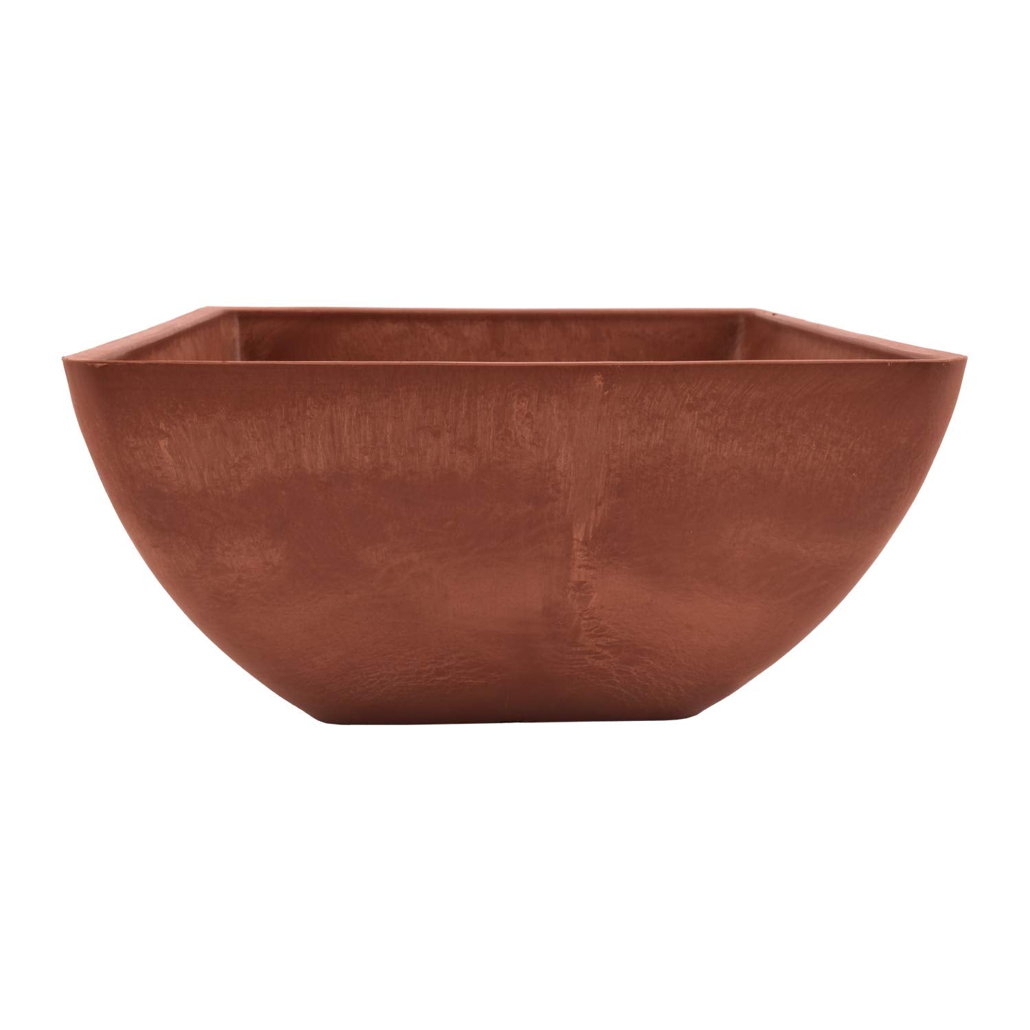 Details: If you want to make a difference to your dull patio, this square pot planter will be a good option. Made of durable materials like polymer, stone powder and wood dust, this box planter is safe for indoor as well as outdoor use. This is a light weight planter. Available in terra cotta color. Measures 12-inch length by 12-inch width by 6-inch height.