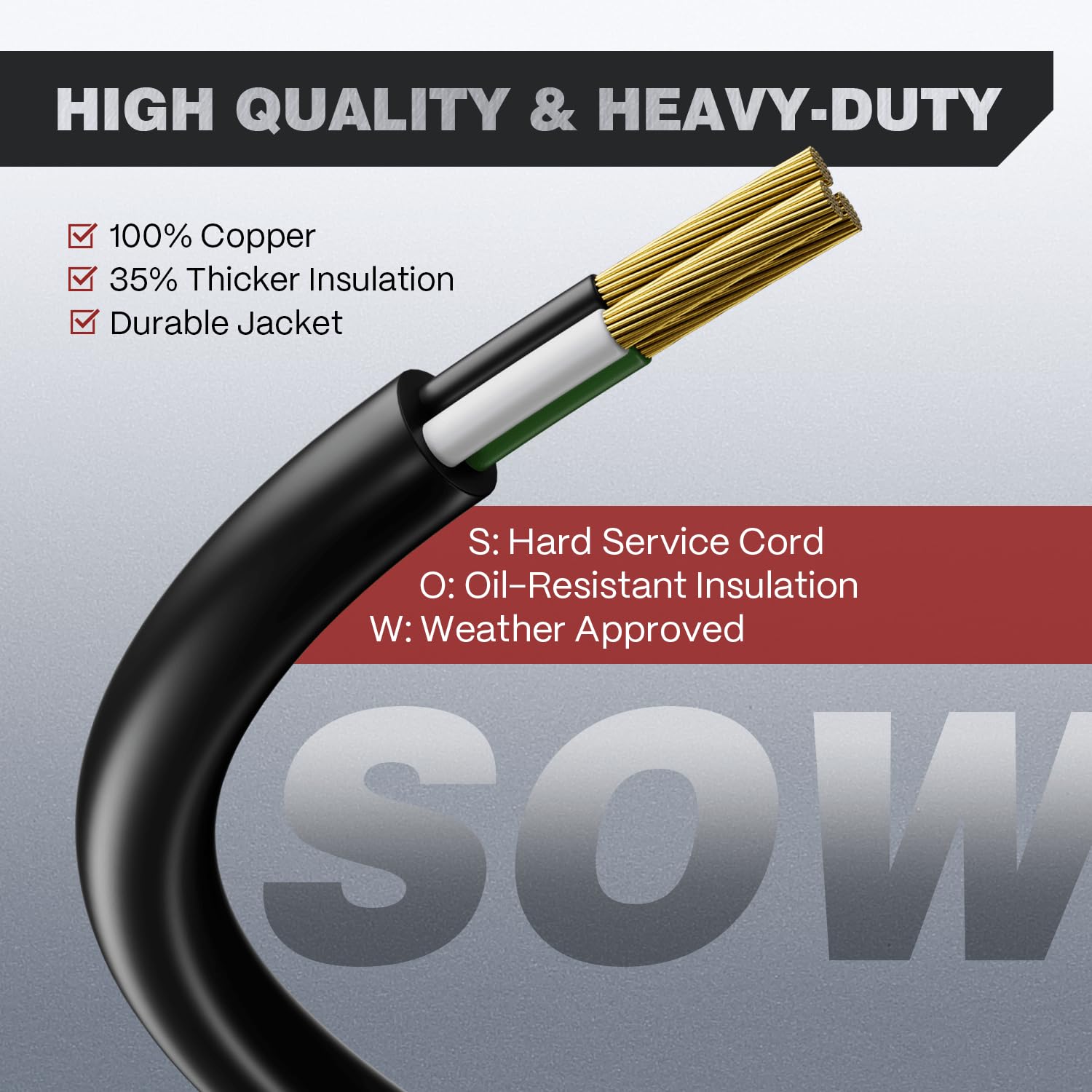 - HEAVY-DUTY & DURABLE: 3 conductors contain 100% copper with 35% thicker insulation to ensure better current conductivity and double safety protection. ARCCAPTAIN 220 extension cord applies STW jacket and durable materials, offering a longer service life and heavy-duty performance.This 8 gauge extension cord is resist to rain or splash water. Perfect for indoor and outdoor use.