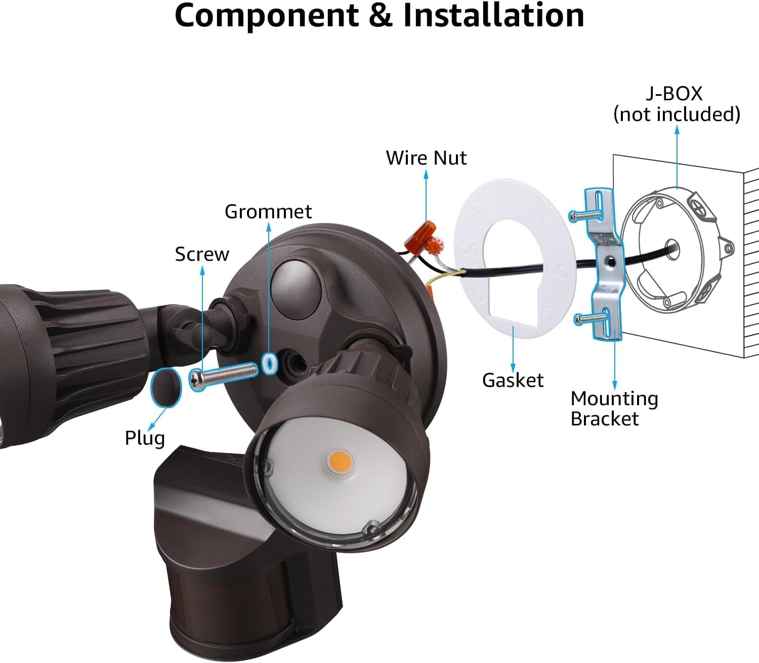 - High-quality Motion Sensor: Equipped with a high-performance motion sensor, this security light detects movement within a 180° range and up to 59 feet away. The adjustable lamp heads allow you to direct the light where it is needed, enhancing safety without disturbing your neighbors