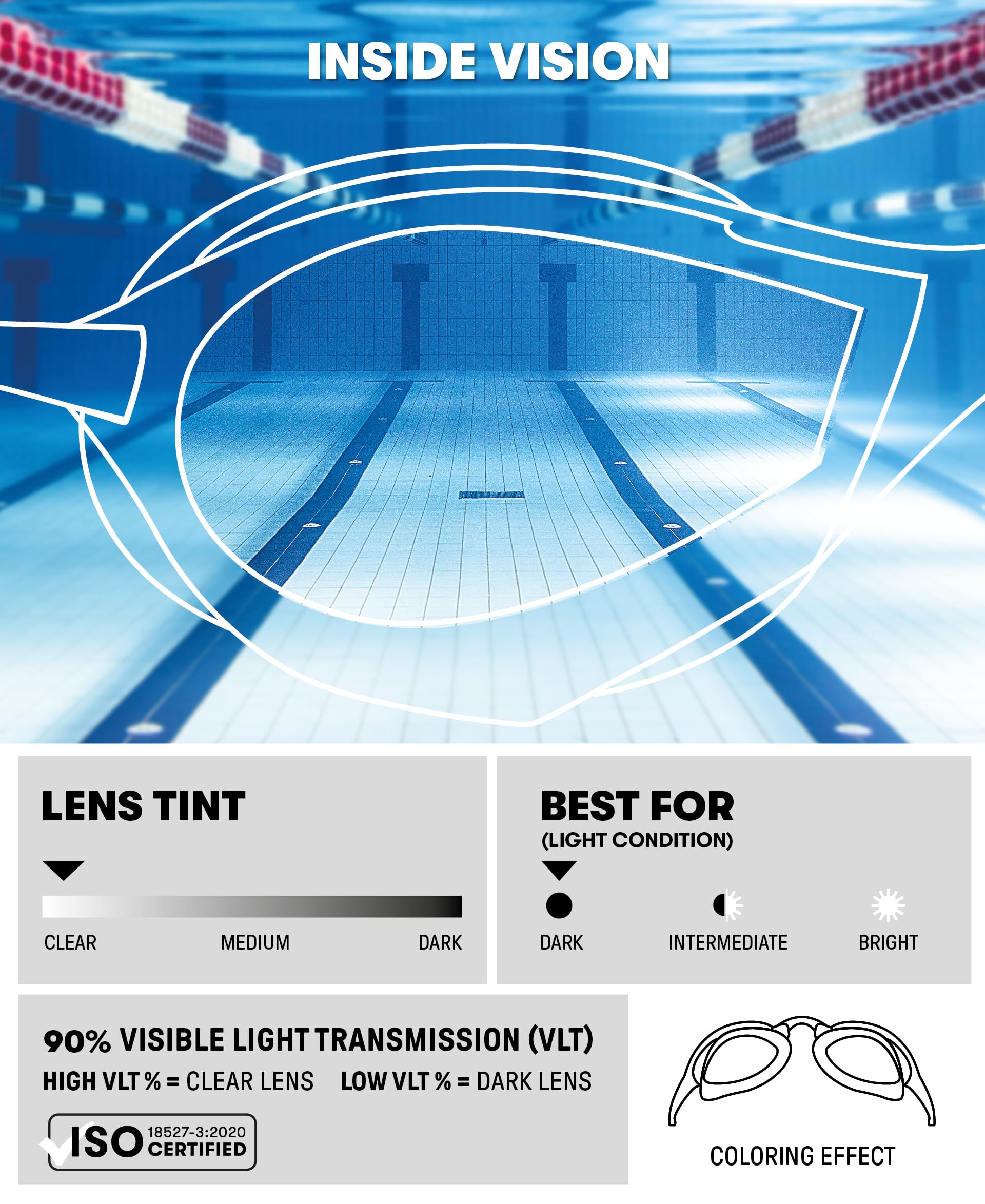 - Created for competitive swimming, these goggles ensure wide vision, ultra comfort and less drag at top speed