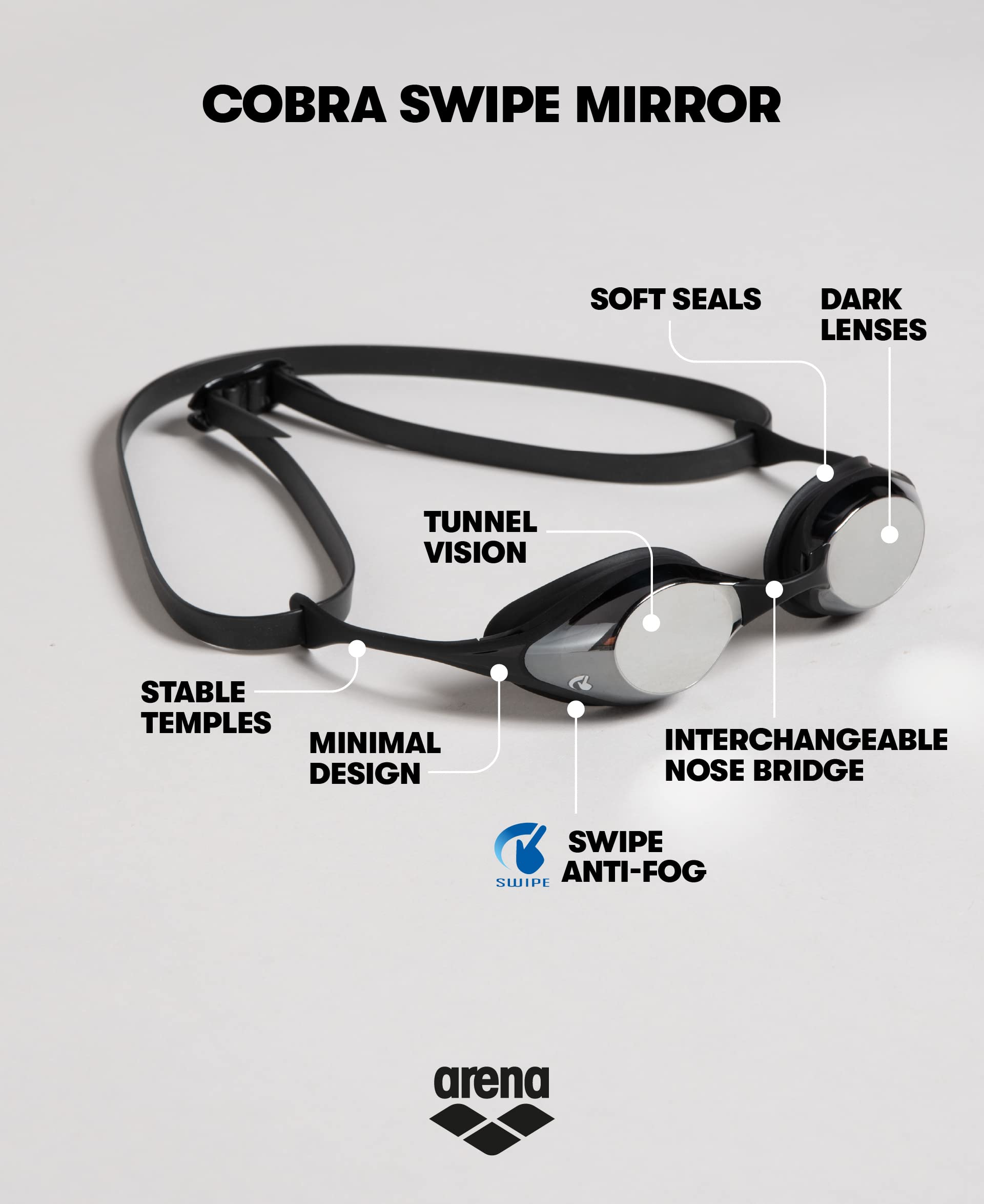 ARENA Unisex Adult Cobra Swipe Racing Swim Goggles for Men and Women Polycarbonate Mirror Lens Hydrodynamic Design, Aqua/Black