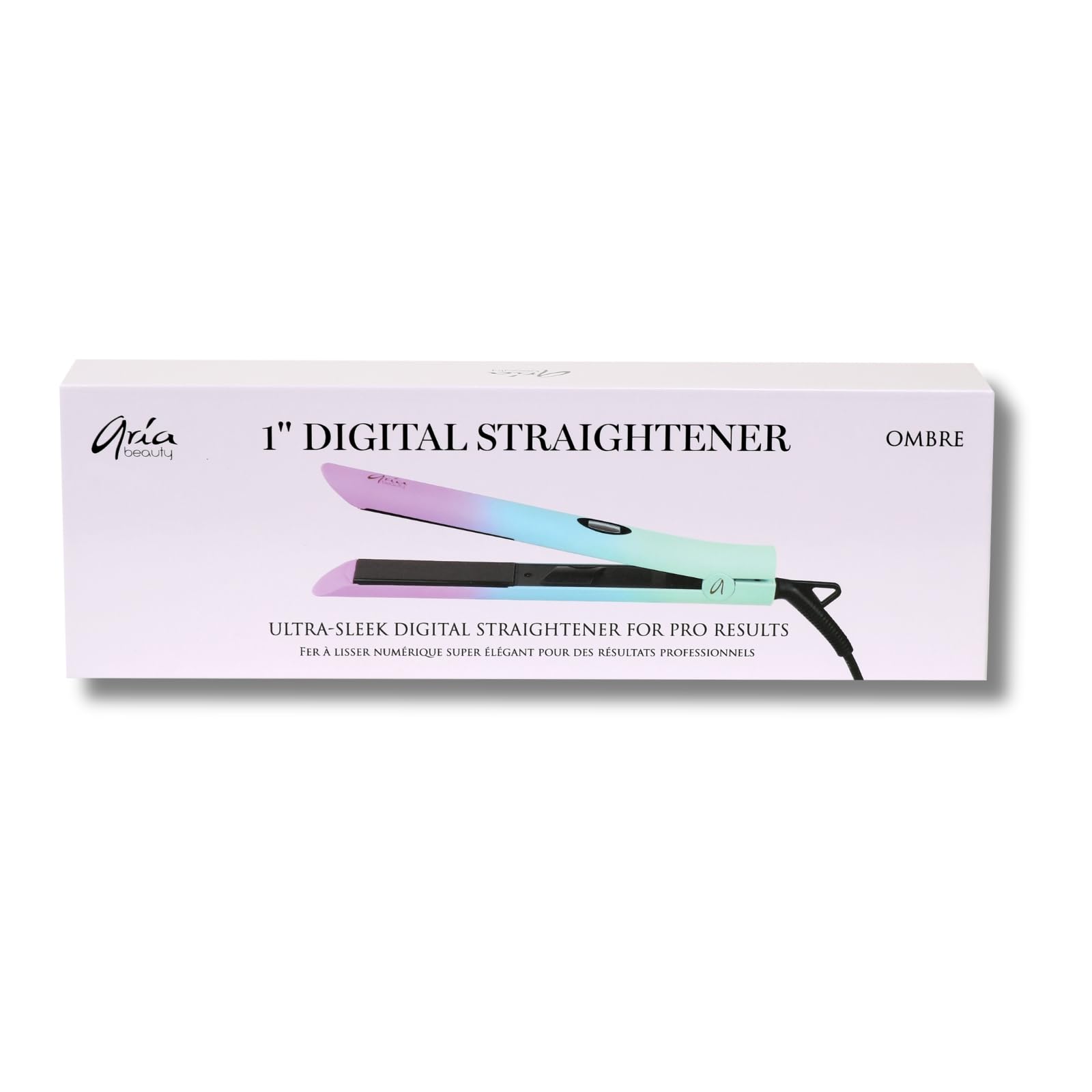 Details: Style your hair to perfection with the Aria Beauty Ultra Sleek Ombre Digital Hair Straightener. Designed with 1" tourmaline ceramic floating plates, it glides smoothly through your hair, providing even heat distribution for sleek, frizz-free results. The infrared ionic technology helps lock in moisture, reduce frizz, and add brilliant shine, leaving your hair looking healthy and vibrant.