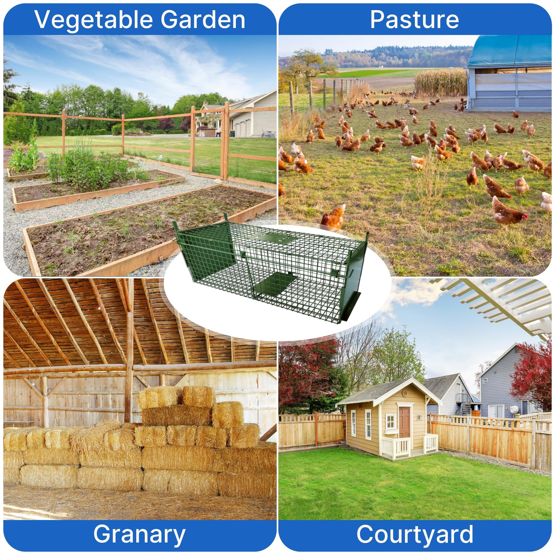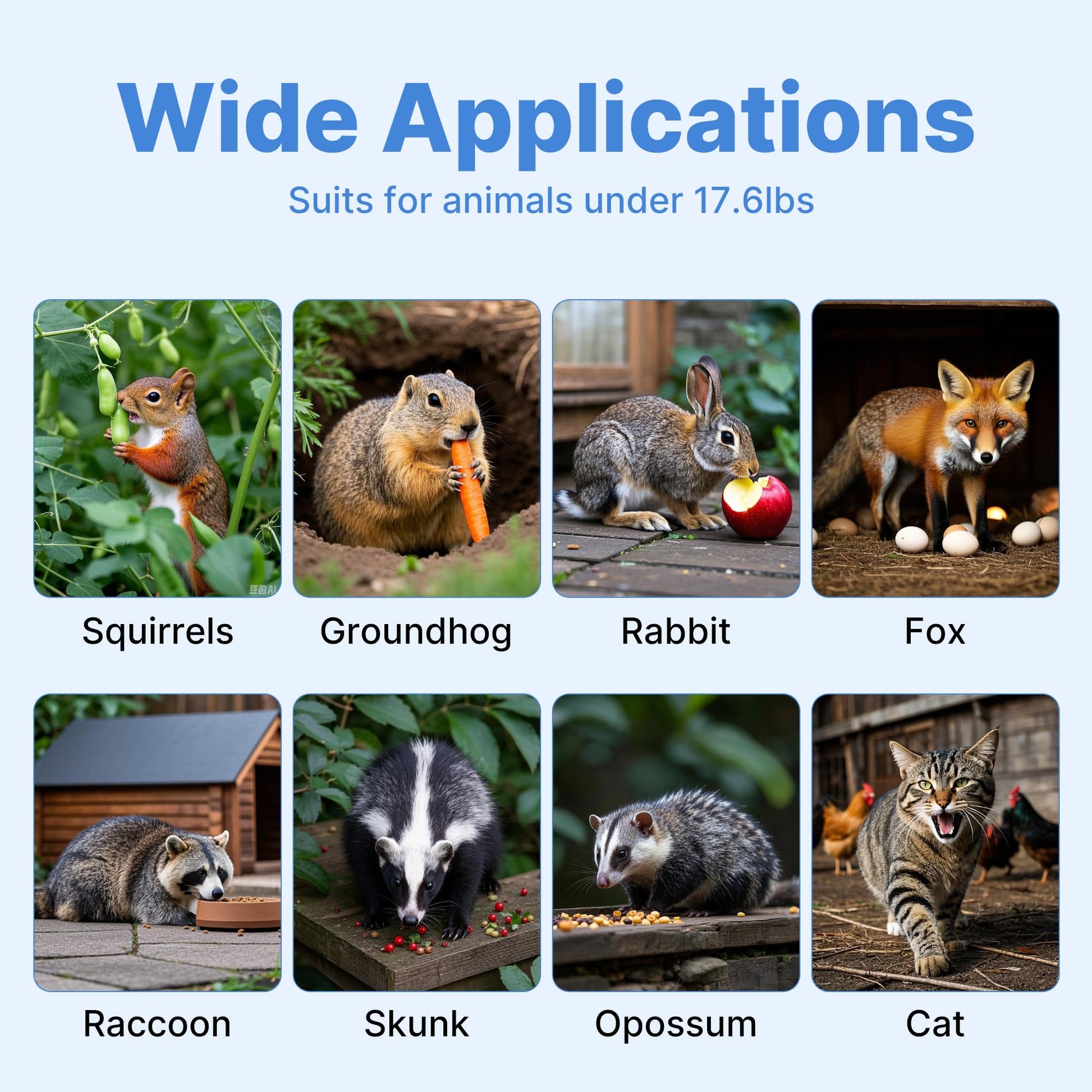 - 【Versatile Pest Control】Our squirrel trap tackles almost all pests. Curious cats, garden - wrecking gophers, pesky rodents? It's got them. Doubles as a cat trap, luring and containing cats gently. Ideal for gophers too.Additionally, it can be effectively used for numerous other species like voles, marmots, opossums, badgers, weasels and wild rabbits.