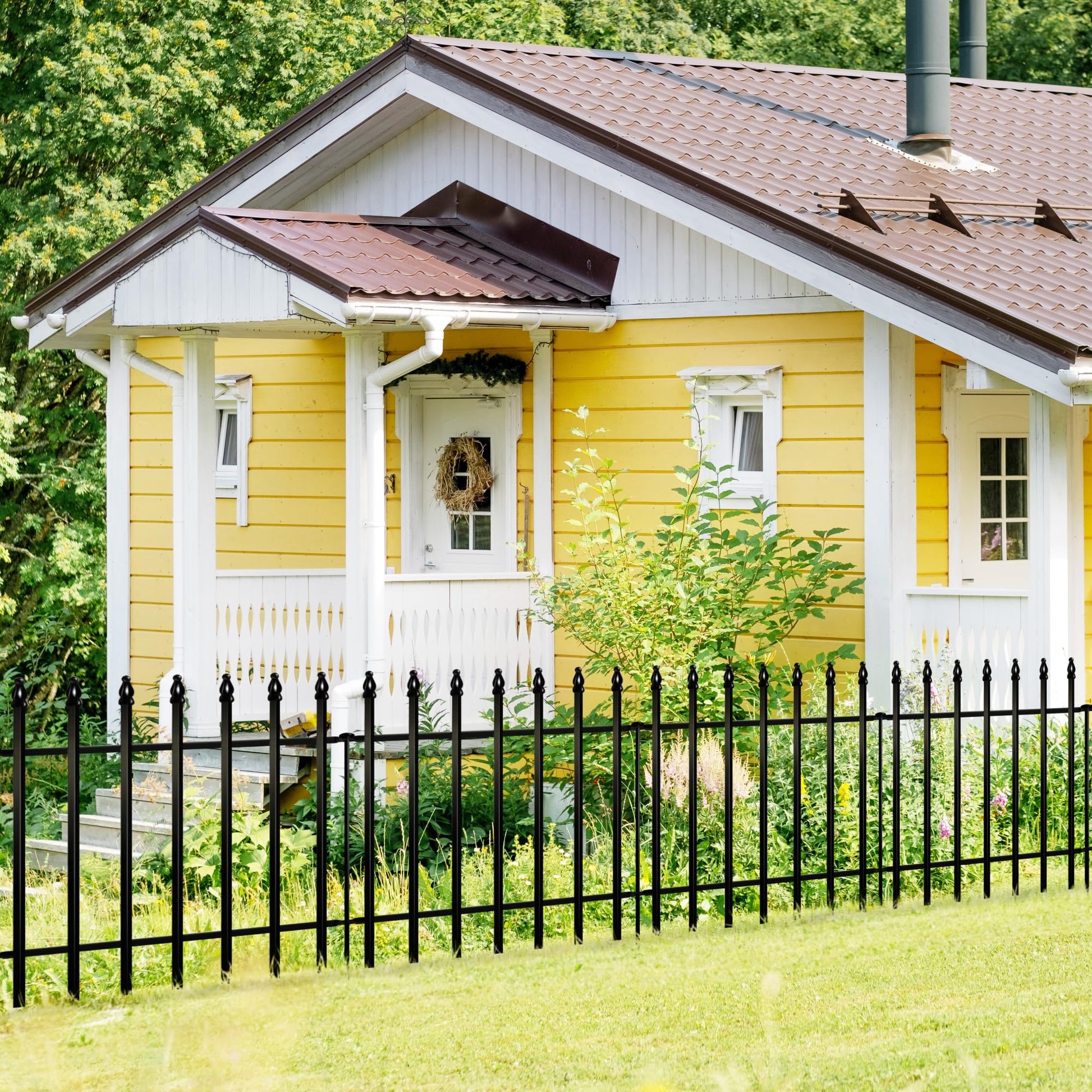- 【Size & Rustproof Material】These decorative garden fence panels are 18" high x 22" wide, and come in a pack of 5, totaling 9.16 feet long. Their sturdy frame provide extra strength and durability. Made of high-quality rustproof metal material and coated with a durable finish, this metal fence is resistant to rust, corrosion, and weather, and can withstand years of outdoor use.