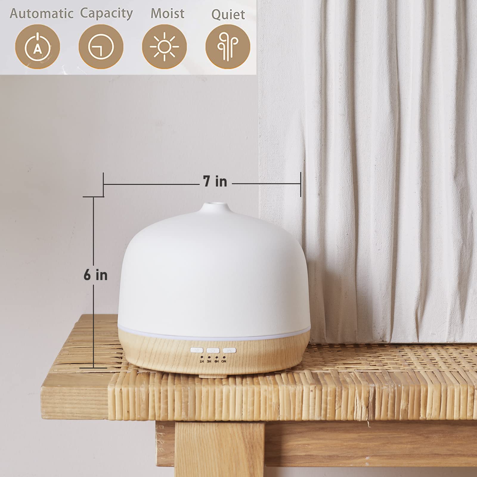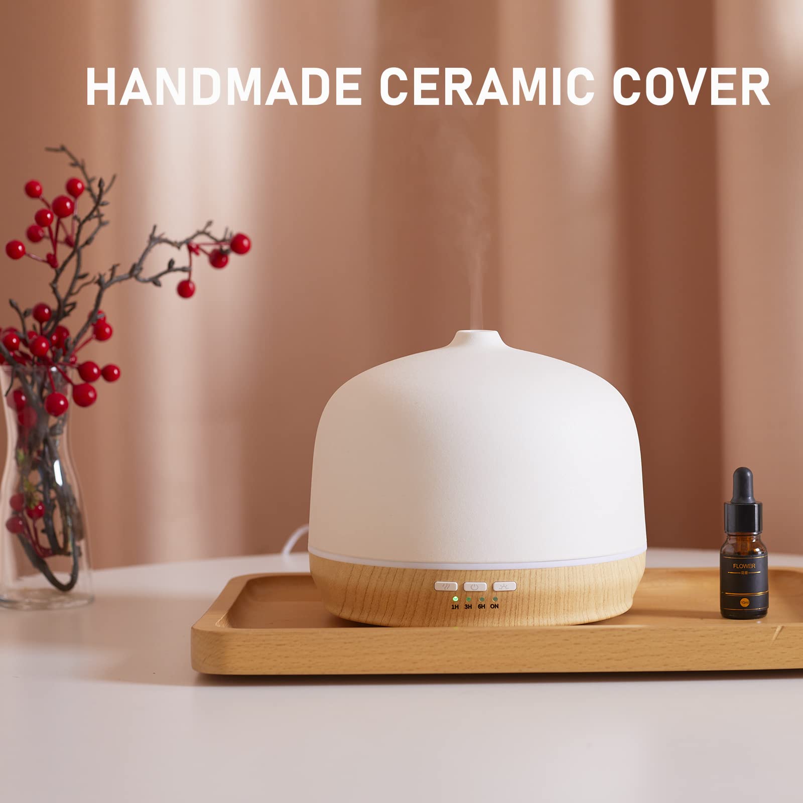 Aromatherapy Essential Oil Diffusers for Home Large Room, Ceramic Scent Air Diffuser Ultrasonic Aroma Diffuser 500ml with Timed—Wood