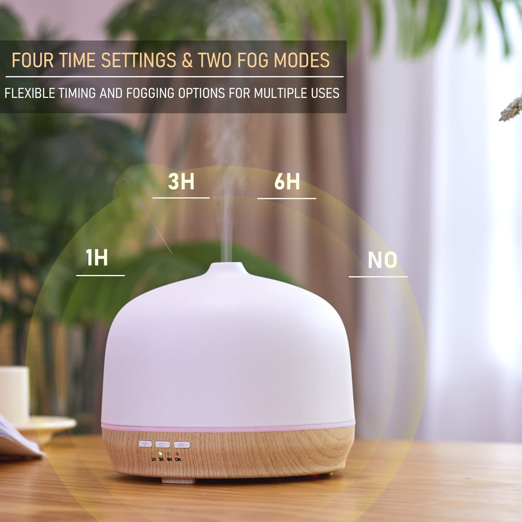 - 【WATERLESS AUTO SHUT-OFF】500ml. 4 timers, 1hr/3hr/6hr/always on. The diffuser will automatically shut off once the water runs out. Create a truly relaxing and customizable environment with simple to use mist, timer and light settings.