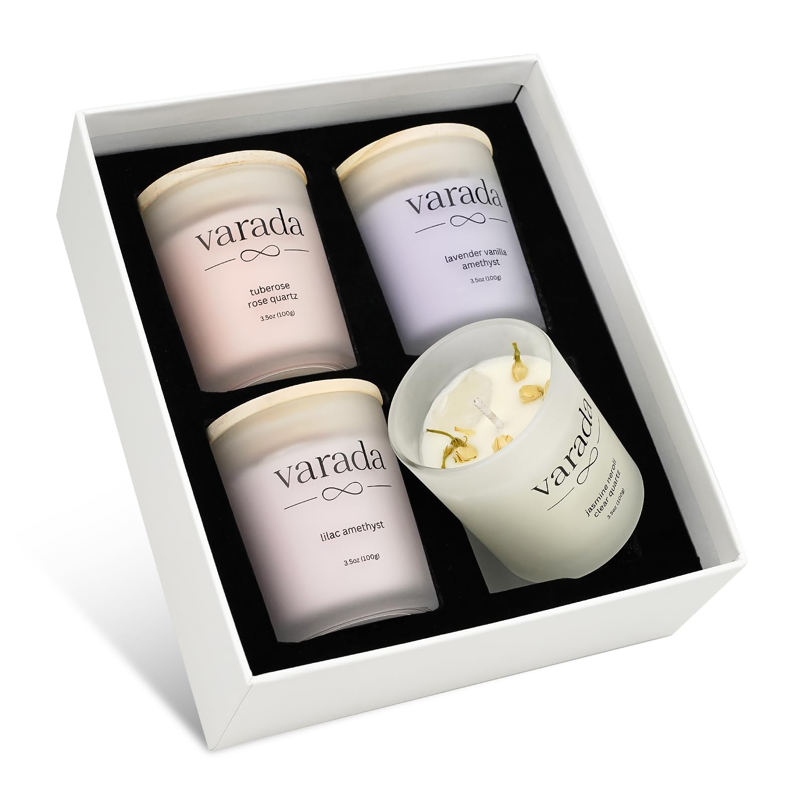 Aromatherapy Soy Candle Gift Set. Healing Crystals and Dried Flowers-90 Hours of Clean Burn. Lavender Vanilla, Rose, Jasmine Neroli, Lilac. Stress Relief. Relaxation. Birthday Gift.