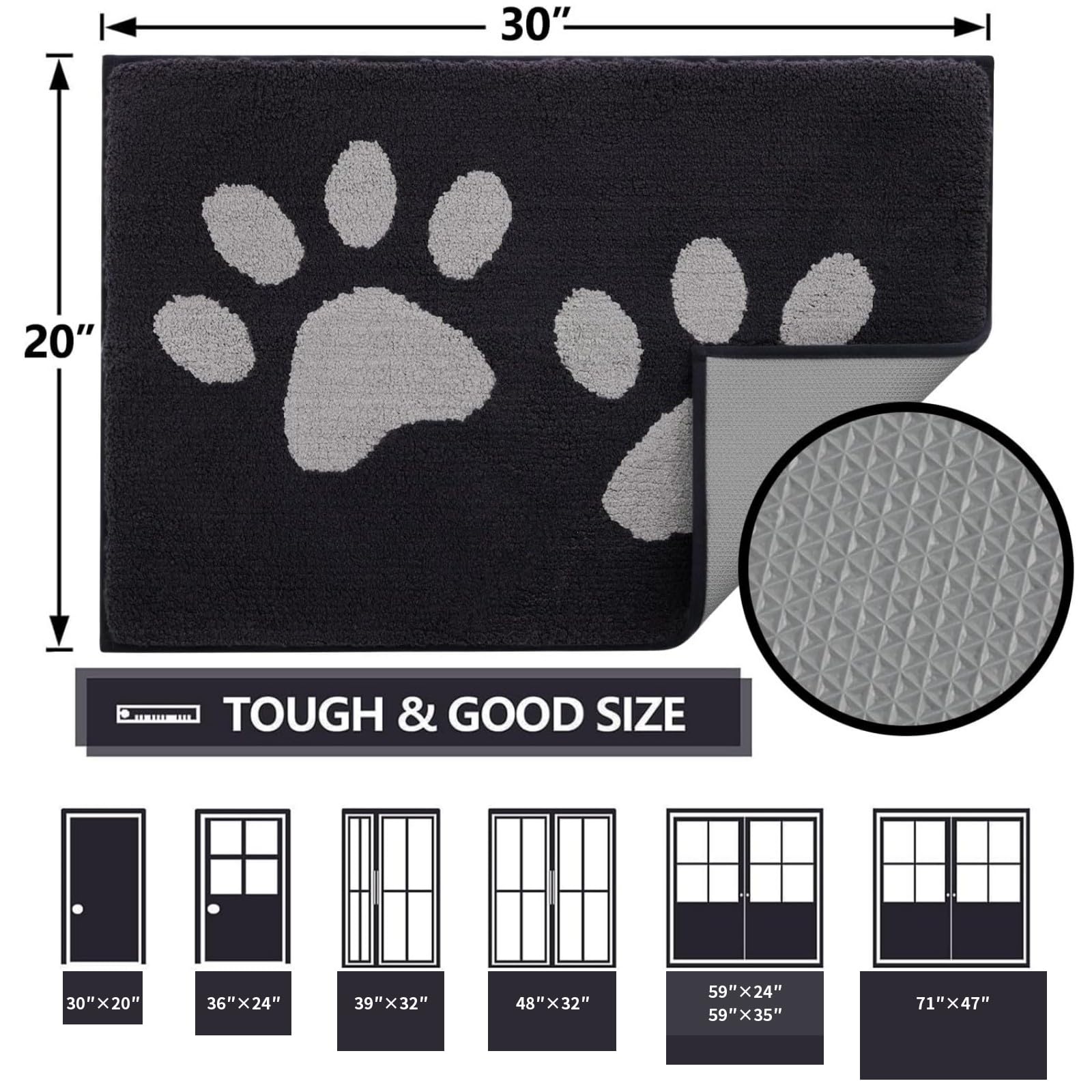 - 【Unique Dog Paw Print Design】The welcome mat measures 24 x 59 inches. Featuring a charming design with two dog paw prints, it complements any decor and is a perfect choice for stylish homes. Our door mats can be used as an indoor mat, welcome mat, entryway rug, bathroom mat, kitchen mat, laundry room mat, porch mat, pet mat, mud mat, front door mat, and back door mat.