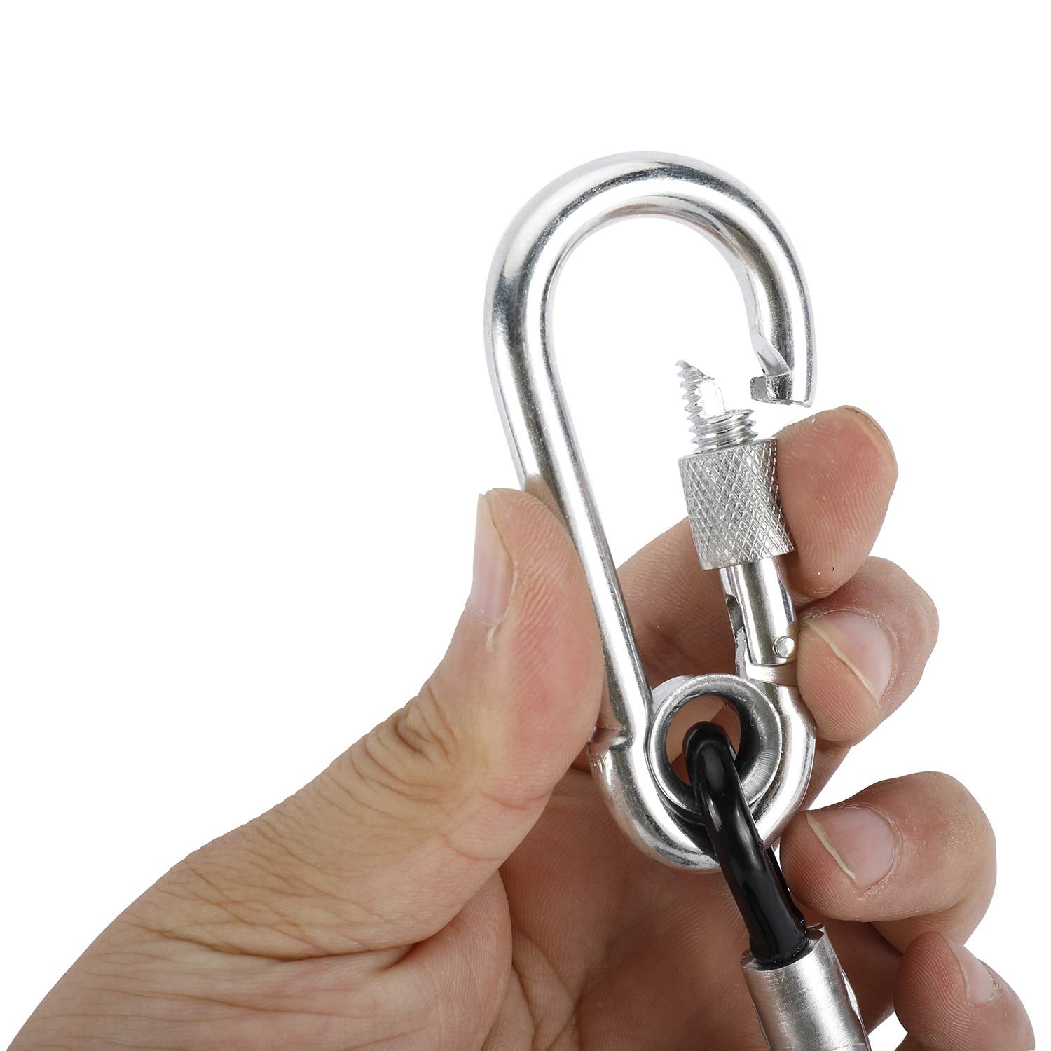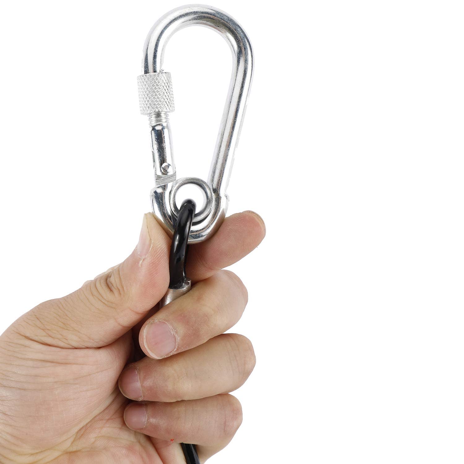 There is a metal circle-screw buckleon each end, which can be opened by pressing. Rotate to lock, unable to press open. One end is connected to a post, and the other end is connected to the dog, which can provide the dog with free movement in the limited space.