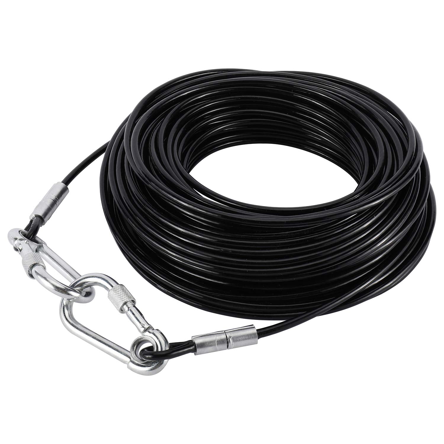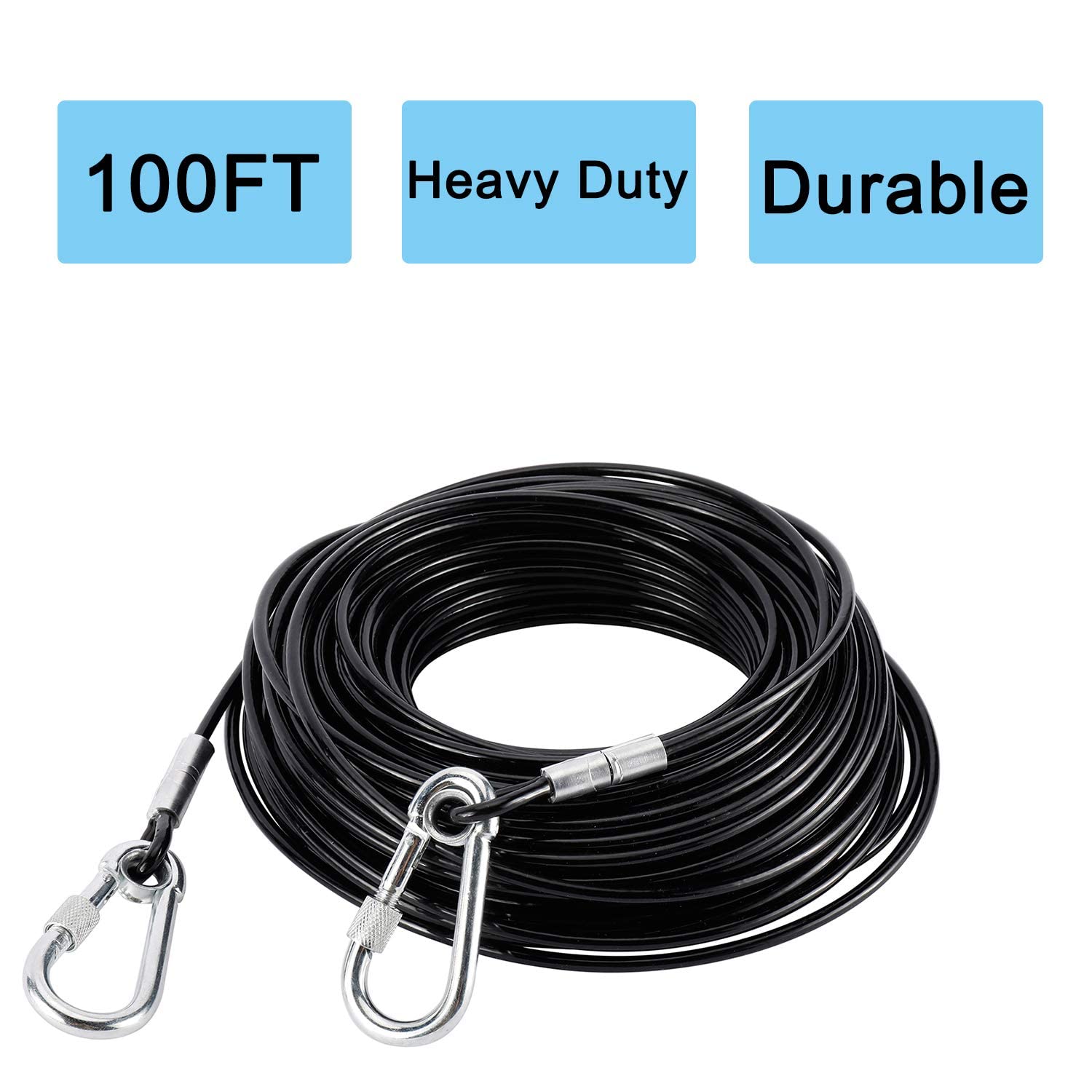 - 【High Quality】Tie out cable for dogs 100ft is made of steel and anti-rusty vinyl cover, it is strong and rustproof, so durable that even a dog's sharp teeth can't be easily broken.