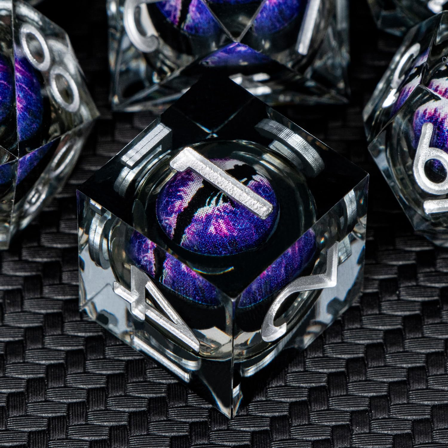 ARUOHHA DND Resin Dice Dragons Eye Dice Liquid Core Purple Sharp Edged Dice Set with Gift Box, Dungeons Polyhedral D and D Dice Set Compatible with D&D Role Playing Game D20 D12 D10 D8 D6