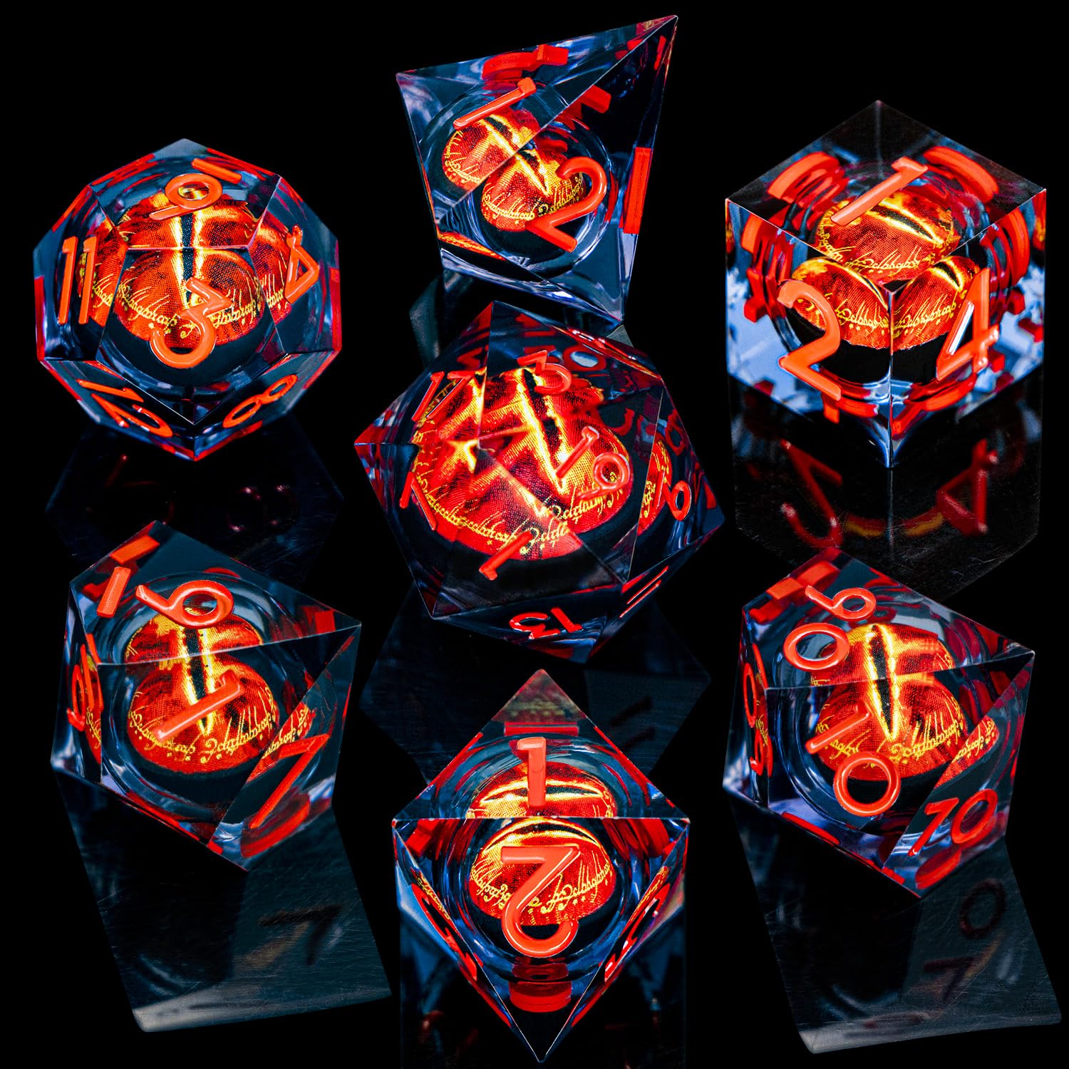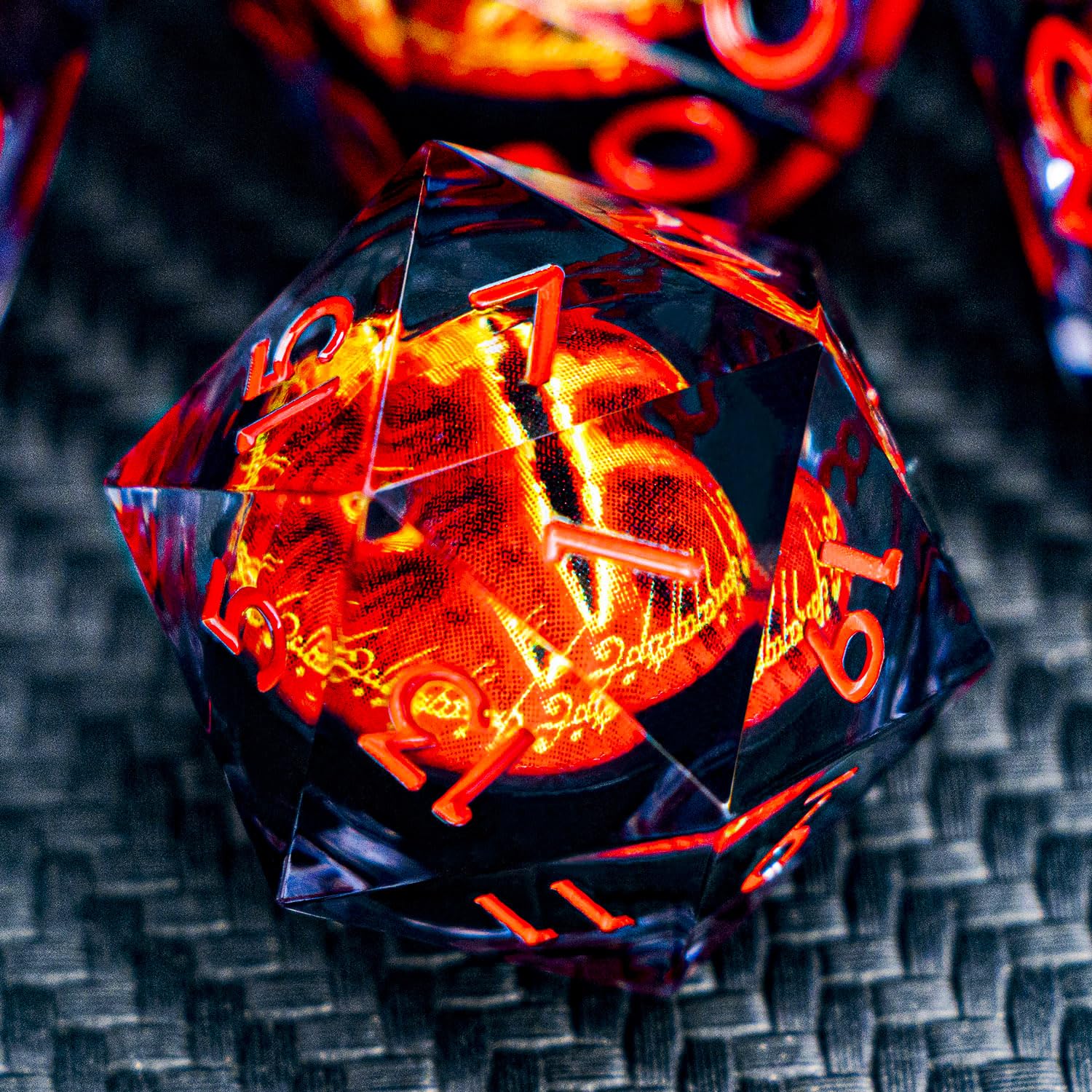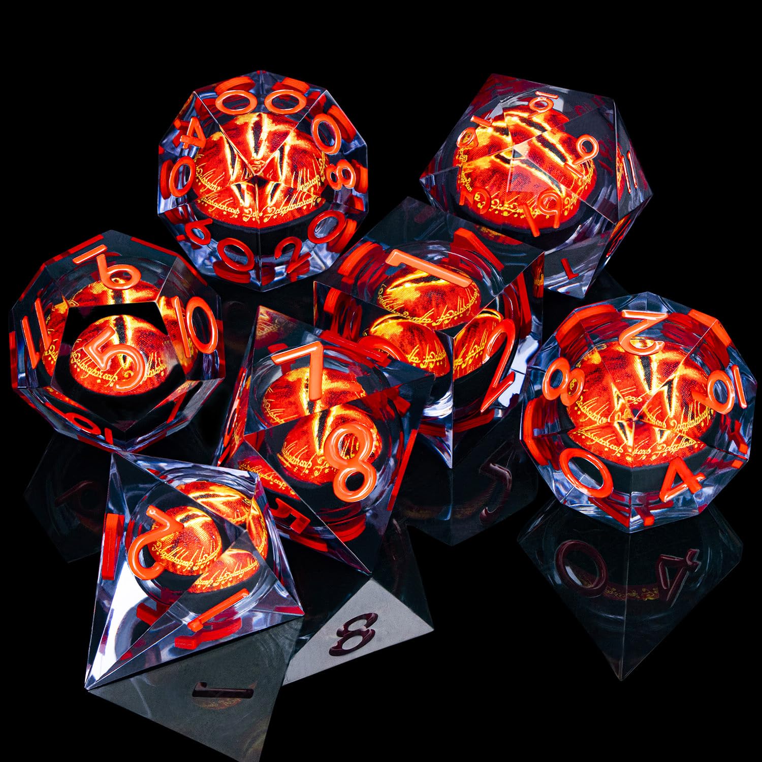 ARUOHHA DND Resin Dice Gazes Eye Dice Liquid Core Flaming RPG Sharp Edged Dice Set with Gift Box, Polyhedral D and D Dice Set Compatible with Dungeons Dragons Role Playing Game D20 D12 D10 D8 D6