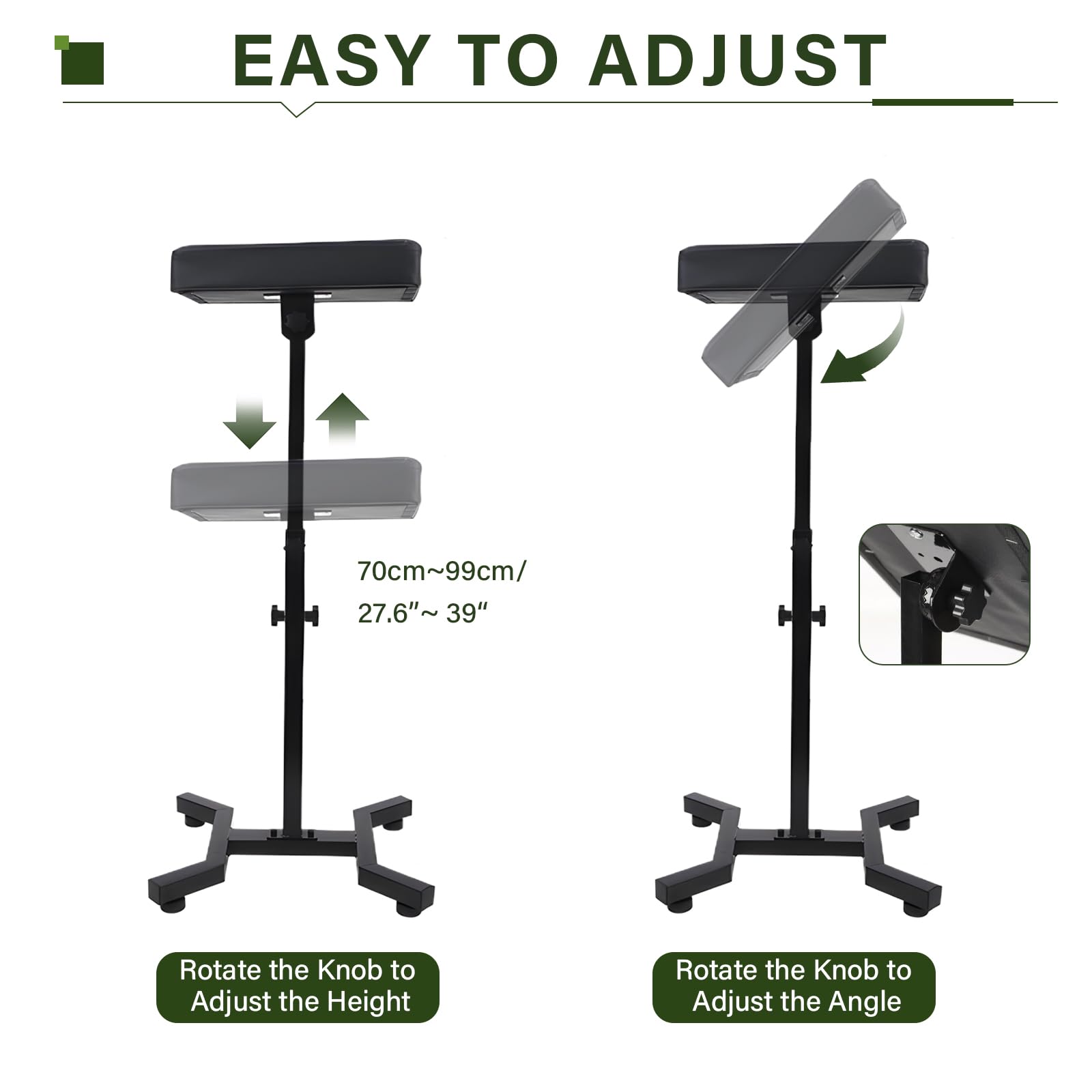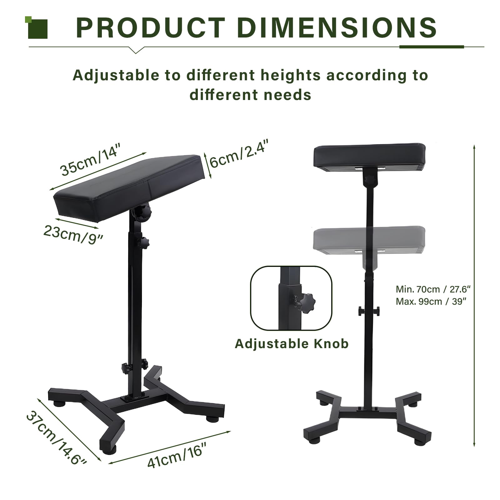 - 【Adjustable Height & Angle】The tattoo armrest stand, with adjustable height between 70cm and 99cm and the cushion can rotate 180°, which can accommodate various customers needs and meet different working conditions. And the 14*9 inch cushion filled with sponges can provide better support for the arm.