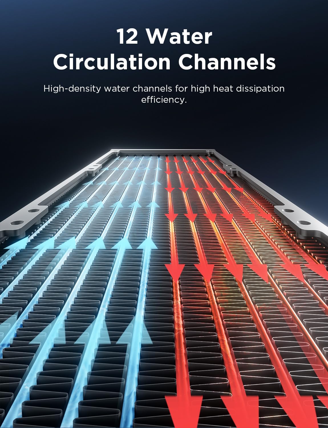 - 【Better Cooling Capability】The AsiaHorse 360mm aio is designed with high-performance dual pumps to optimize the coolant flow twice as fast, combining 3000RPM and 4000RPM to maximize the cooling capability and ensure that the hardware maintains a stable low temperature even when running under high loads, prolonging the service life