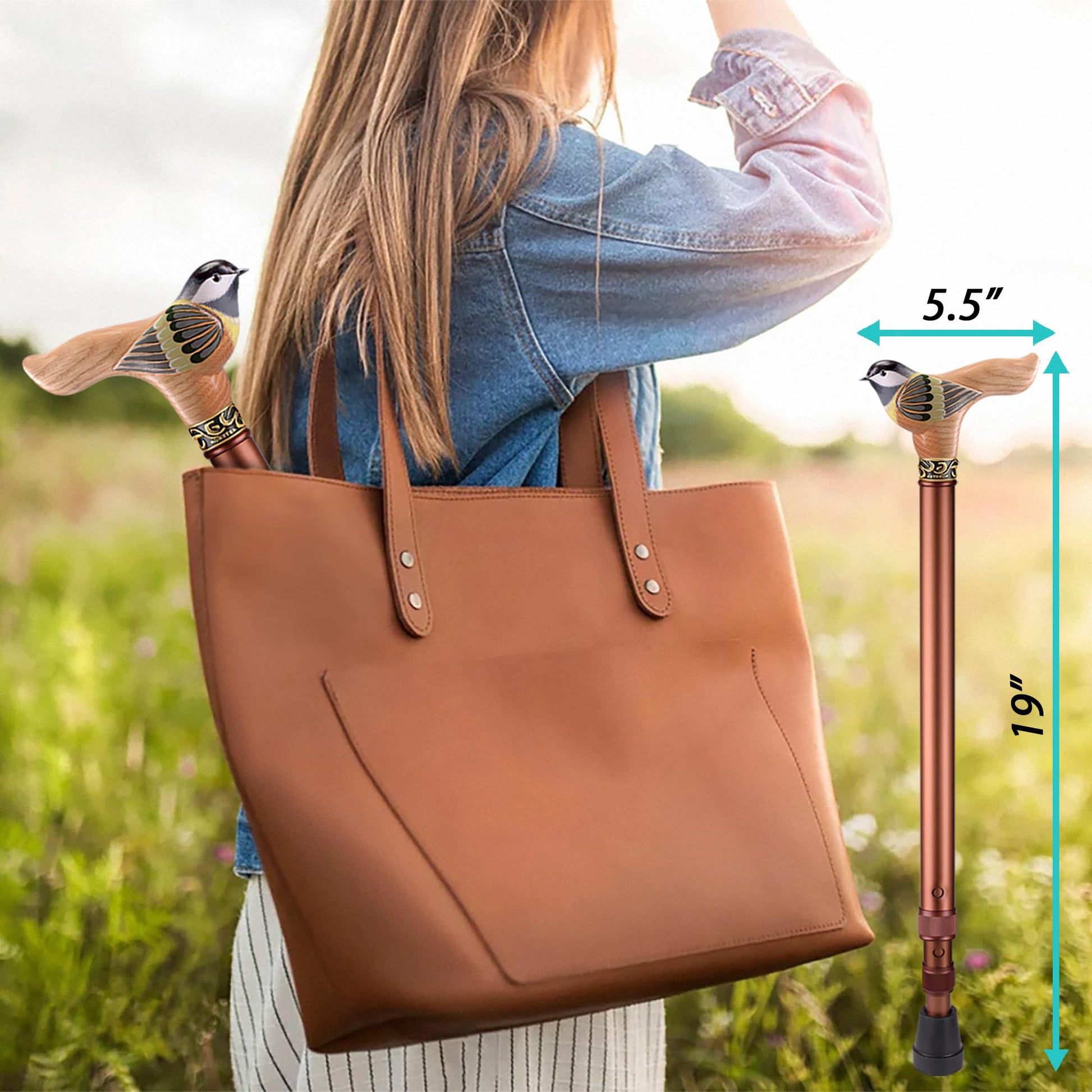 - SHOWCASE YOUR INDIVIDUAL EXPRESSION. Elevate your look with our fashionable walking cane for women. Its elegantly painted-by-hand wooden handle ensures you stand out from the crowd, while the ergonomic bird-inspired design provides a comfortable and secure grip.
