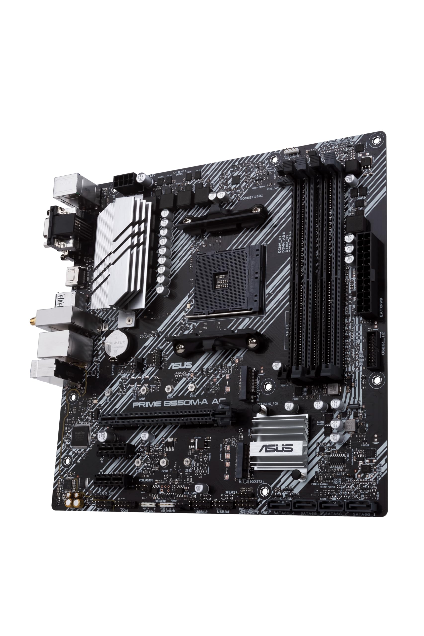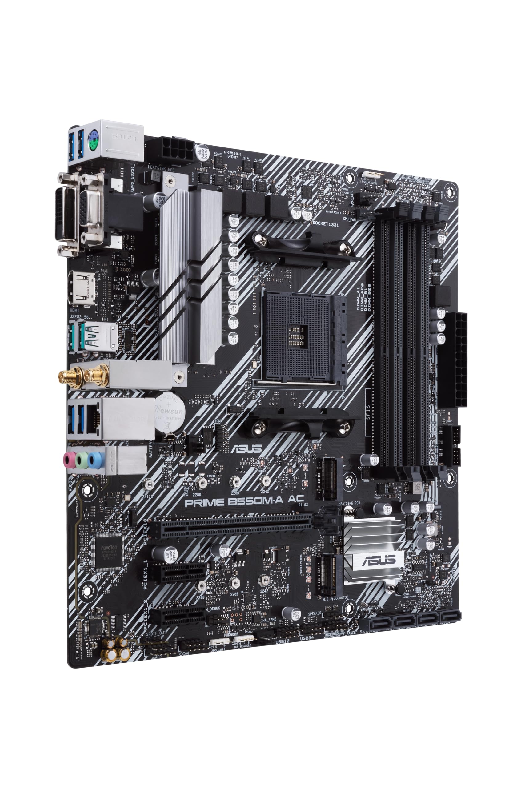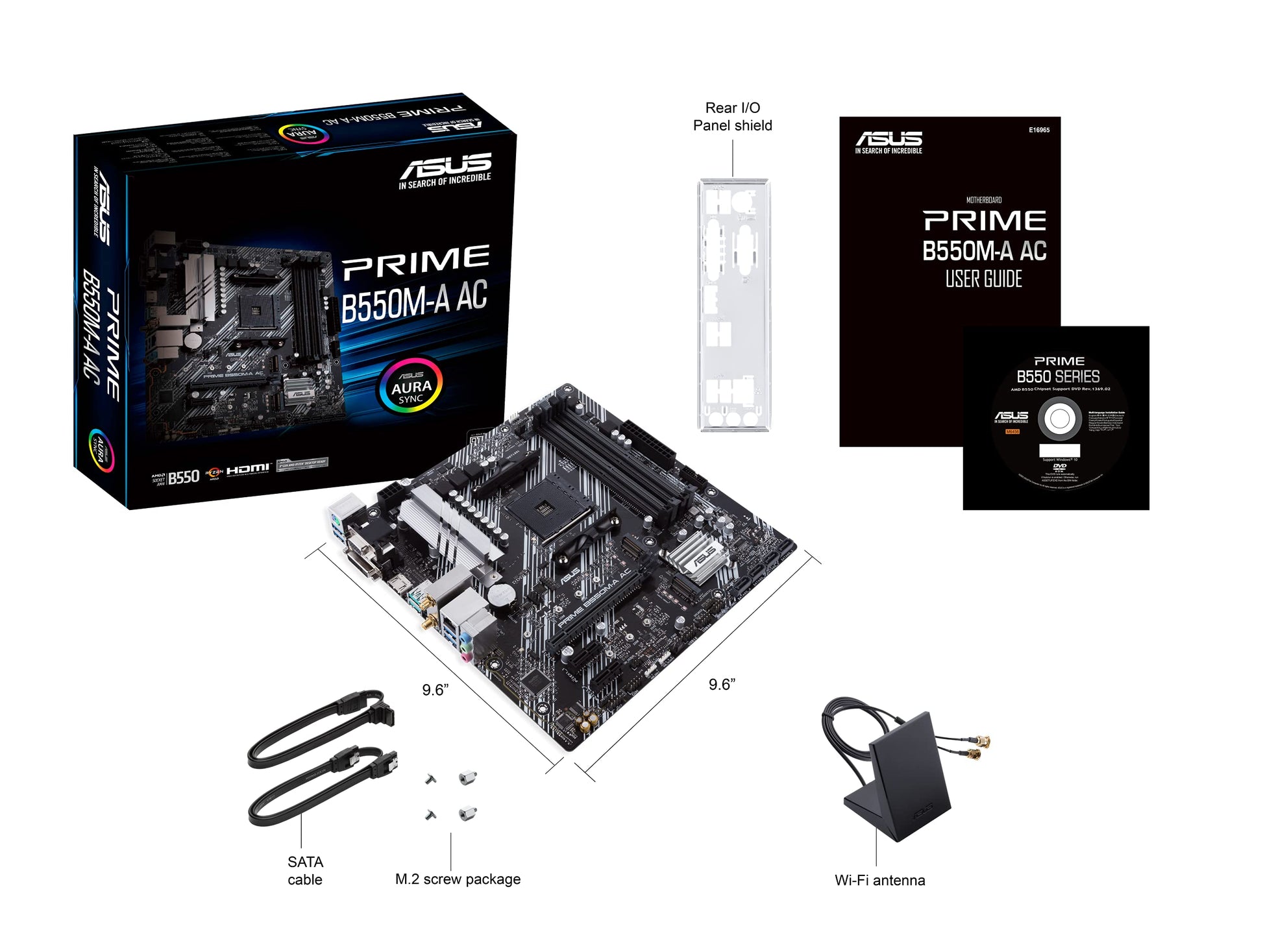 ASUS Prime B550M-A AC AMD AM4 (3rd Gen Ryzen) Micro ATX Motherboard (PCIe 4.0, WiFi, ECC Memory, 1Gb LAN, HDMI 2.1/D-Sub, 4K@60HZ, Addressable Gen 2 RGB Header and Aura Sync)