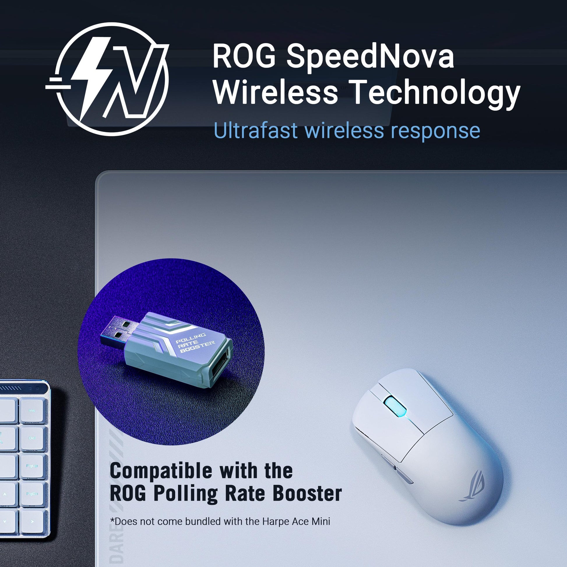 ASUS ROG Harpe Ace Mini Wireless Esports Gaming Mouse – Small Compact Design, Right-Handed, 49g Lightweight, Tri-Mode Connectivity, 36K DPI, up to 105Hr Battery, Pro-Approved, PC/Mac Support - White