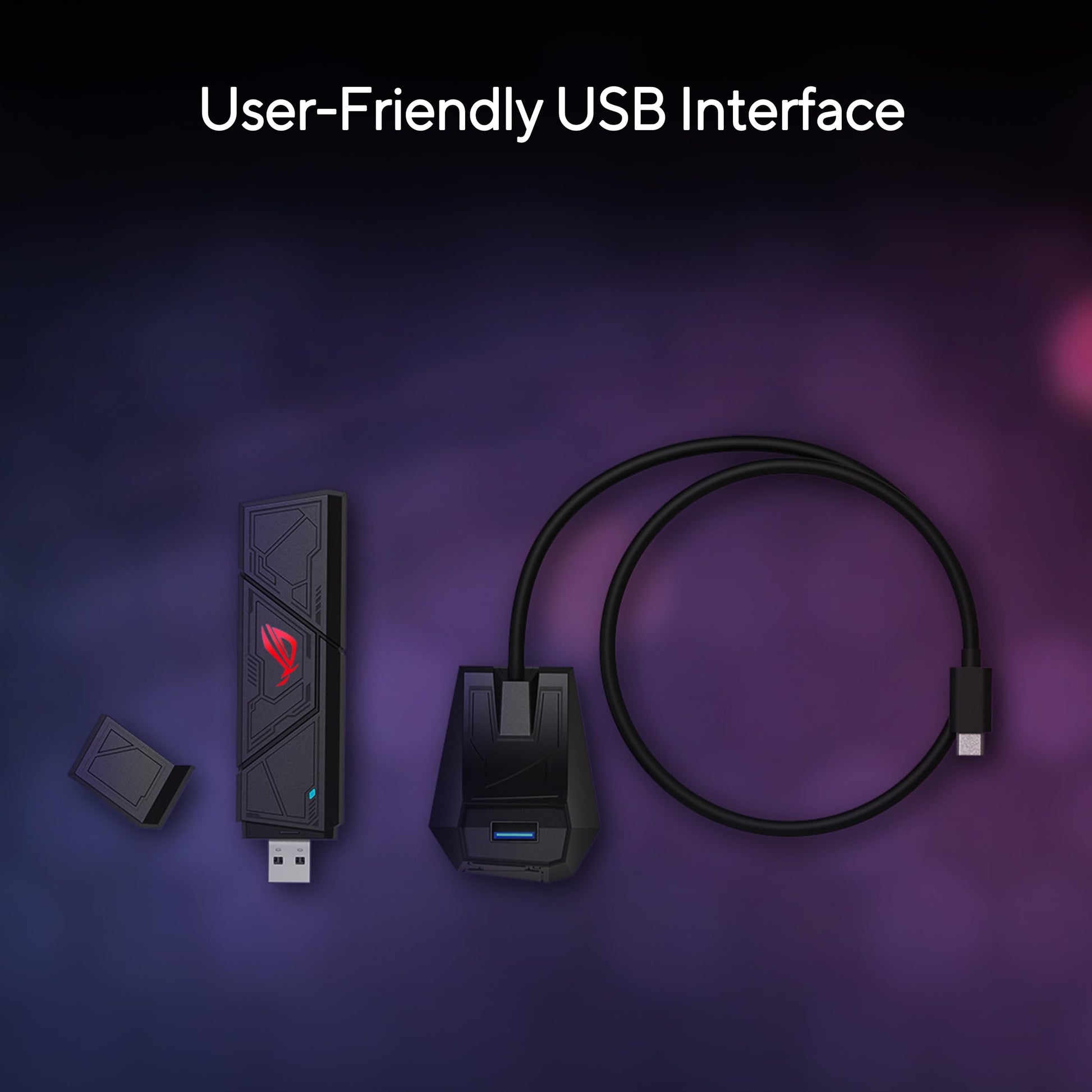 ASUS ROG USB-BE92 Tri-Band BE6500 WiFi 7 USB Adapter, 6GHz Band, Support 4096-QAM, Multi-Link Operation (MLO), Compatible with Type A and C, WPA3 Network Security
