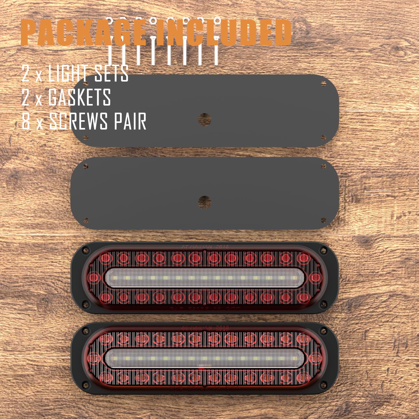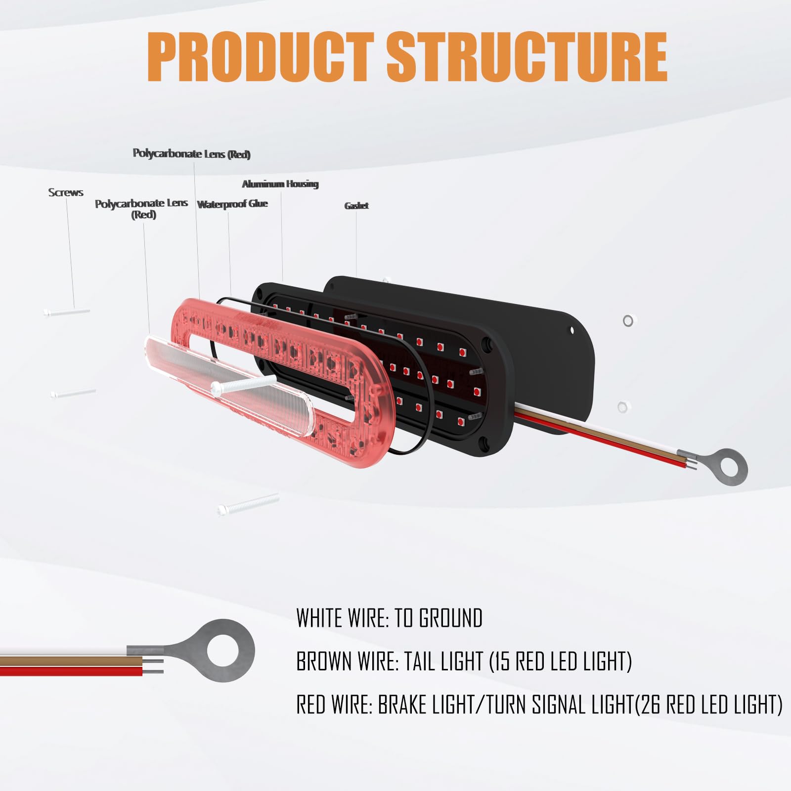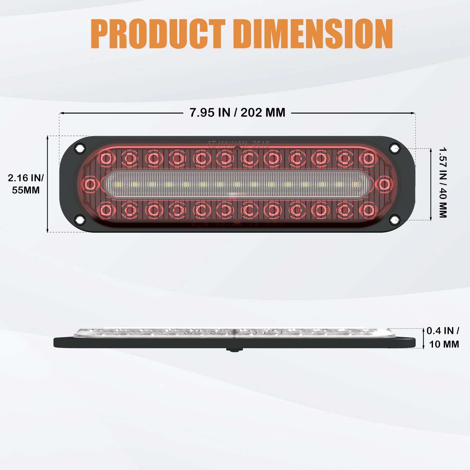 AT-HAIHAN Pack of 2 Oval Red LED Trailer Stop Brake Turn Signal Tail Lights with White Reverse Light, DOT Compliant Waterproof Surface Mount Safety Lighting