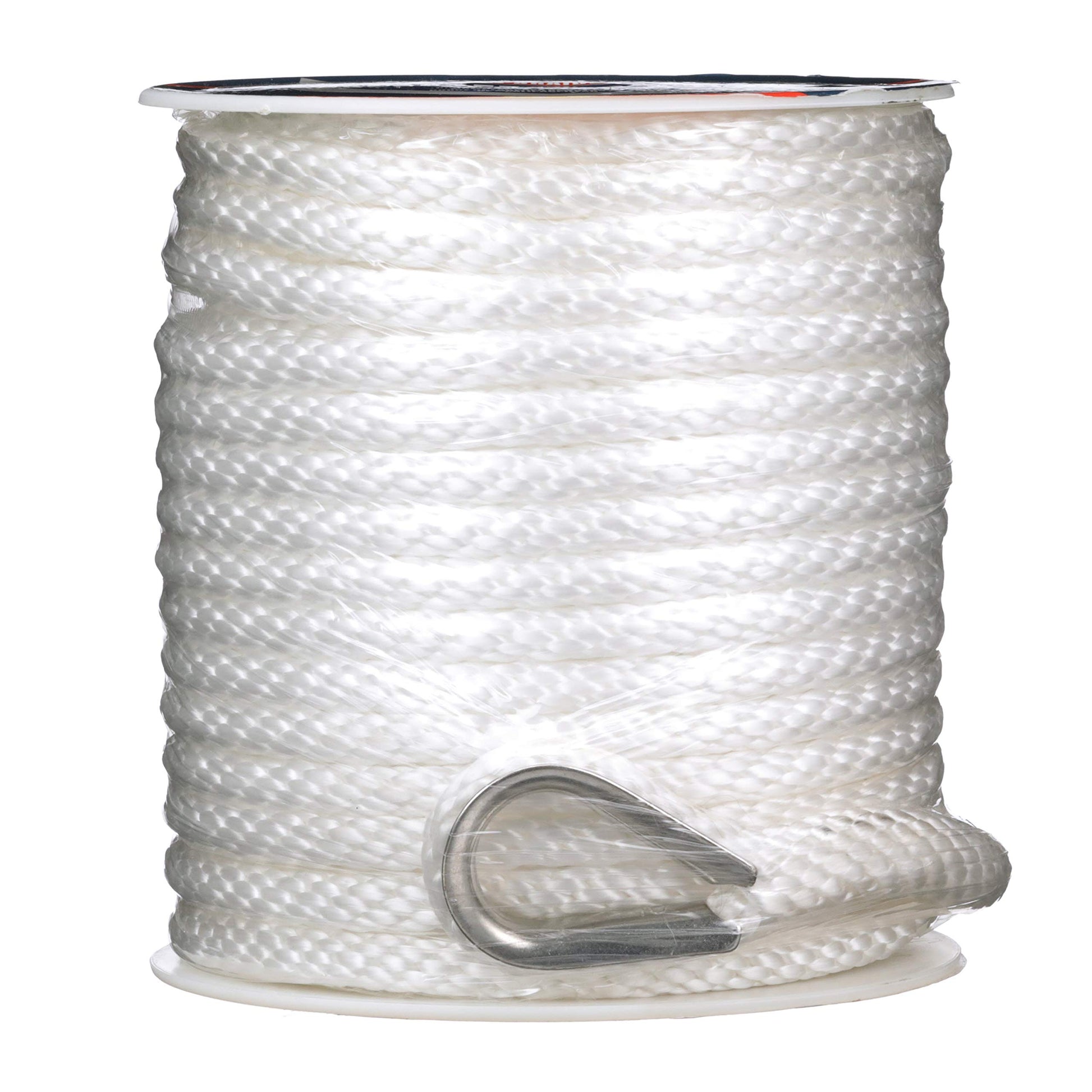 Attwood 11724-1 Solid Braid Multifilament Polypropylene Anchor Line with Thimble 3/8-Inch x 100-Feet, White
