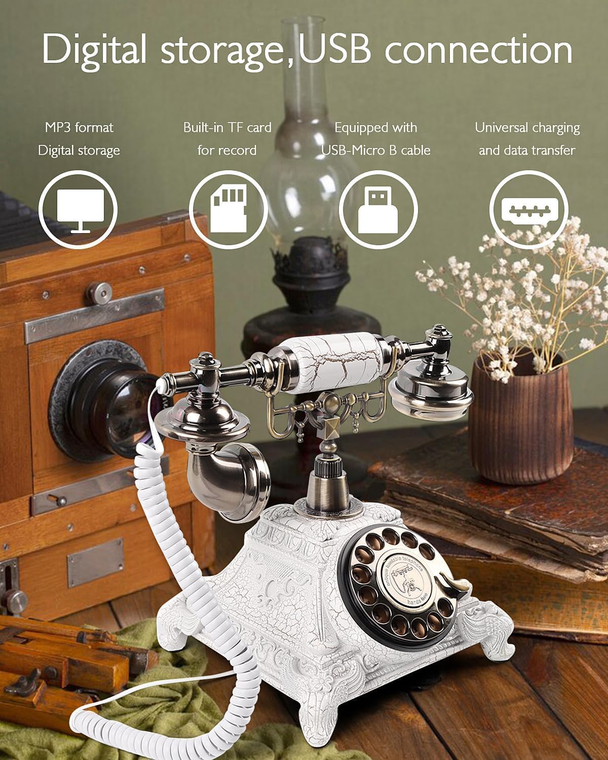 Details: Audio Guestbook – The Modern & Heartfelt Way to Capture Memories Upgrade your special occasions with our Audio Guestbook, a unique and interactive alternative to traditional wedding guest books, funeral guest books, or celebration of life guest books. This vintage-style telephone records heartfelt messages, laughter, and well-wishes, creating a timeless keepsake you’ll treasure forever. Perfect for weddings, funerals, graduations, birthday parties, and engagement parties, this retro audio guestbook phone adds a nostalgic touch to any event. Simply pick up the handset, press record, and let your guests leave personalized voice messages—no writing required! Why Choose Our Audio Guestbook? ✔ Wedding Guestbook Alternative – A fun and modern twist on the classic wedding book or livre d'or. ✔ Funeral Guest Book Memorial Guest Book – Preserve loving tributes in a touching, personal way. ✔ Easy to Use – Just plug in, press a button, and start recording—no technical skills needed. ✔ Stylish & Vintage Design – The elegant audio guestbook complements any décor, from vintage weddings to modern celebrations. ✔ Keepsake Quality – All recordings are saved digitally, so you can relive every heartfelt moment. Whether you're looking for a wedding guest books set, a guestbook wedding phone, or a funeral guest book memorial, our audio guestbook is the perfect choice. Make your event unforgettable—order yours today! Includes: - Audio guestbook telephone with built-in recording - USB cable for power and file transfer - Simple setup guide Celebrate love, life, and memories with the festring audio guest book—where every voice tells a story.