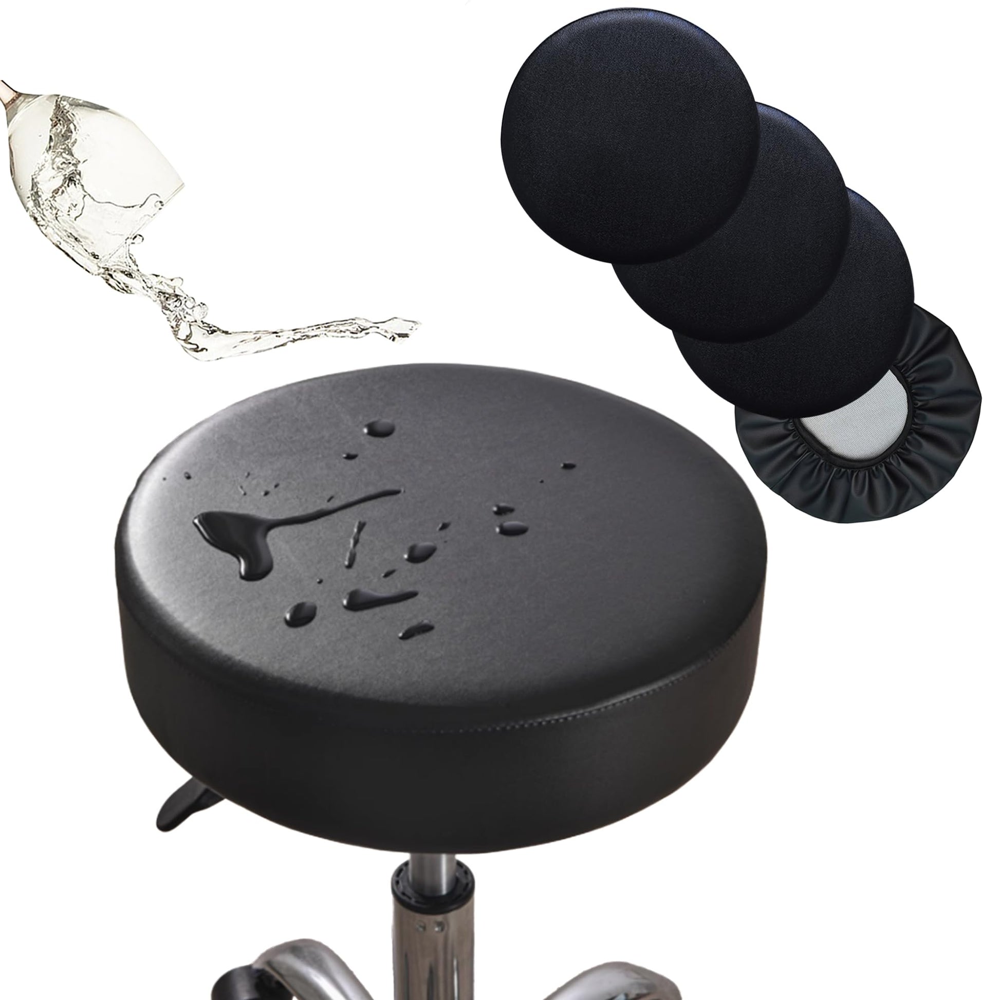 Augld 4 Pack Round Bar Stool Cover Watedrproof Faux Leather Stool Seat Cover for Bar, Chair, Salon, Spa, Tattoo, Clinic 17-18 Inch Black
