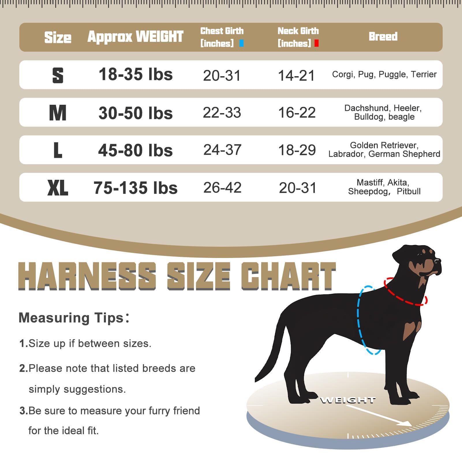 - 【Sizing Guide】Our dog harness offers four sizes to choose from. For a proper fit, please measure your dog before purchasing and check our sizing chart. We hope you have a pleasant shopping experience.