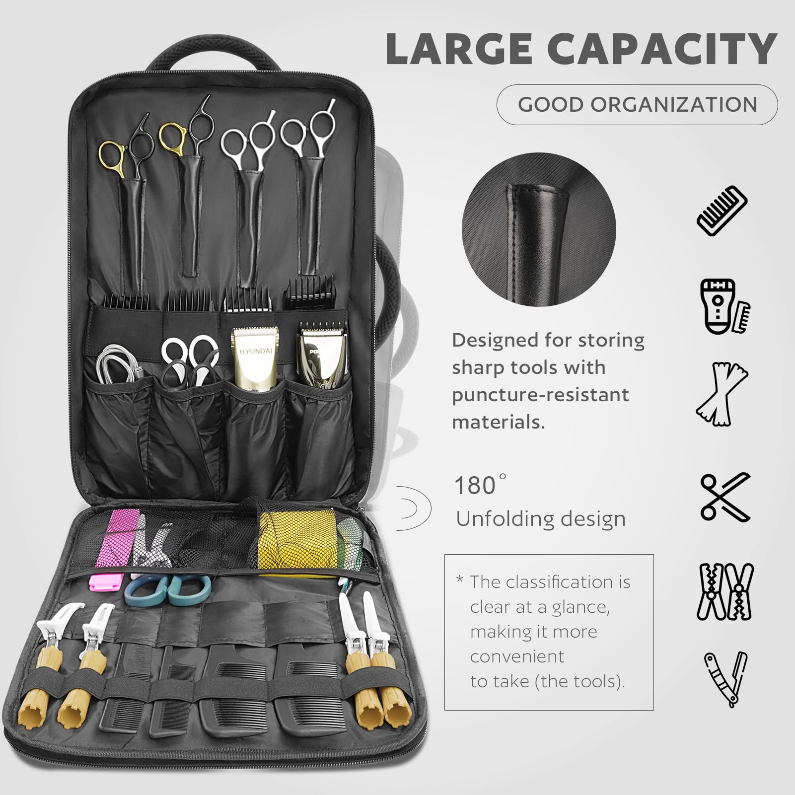 - Smart Capacity: The professional hair clipper backpack is 17.3*8*11.5. It can store scissors, combs, hair clippers, hairdryers, hair straighteners, mirrors, brushes, cape spray bottles, and other large tools. The wrap-around PU leather completely incorporates into the scissors, protecting the tools and the backpack from damage. This is your ideal hairdresser travel bag! Perfect for beginner barbers, self-barbers and professional barbers