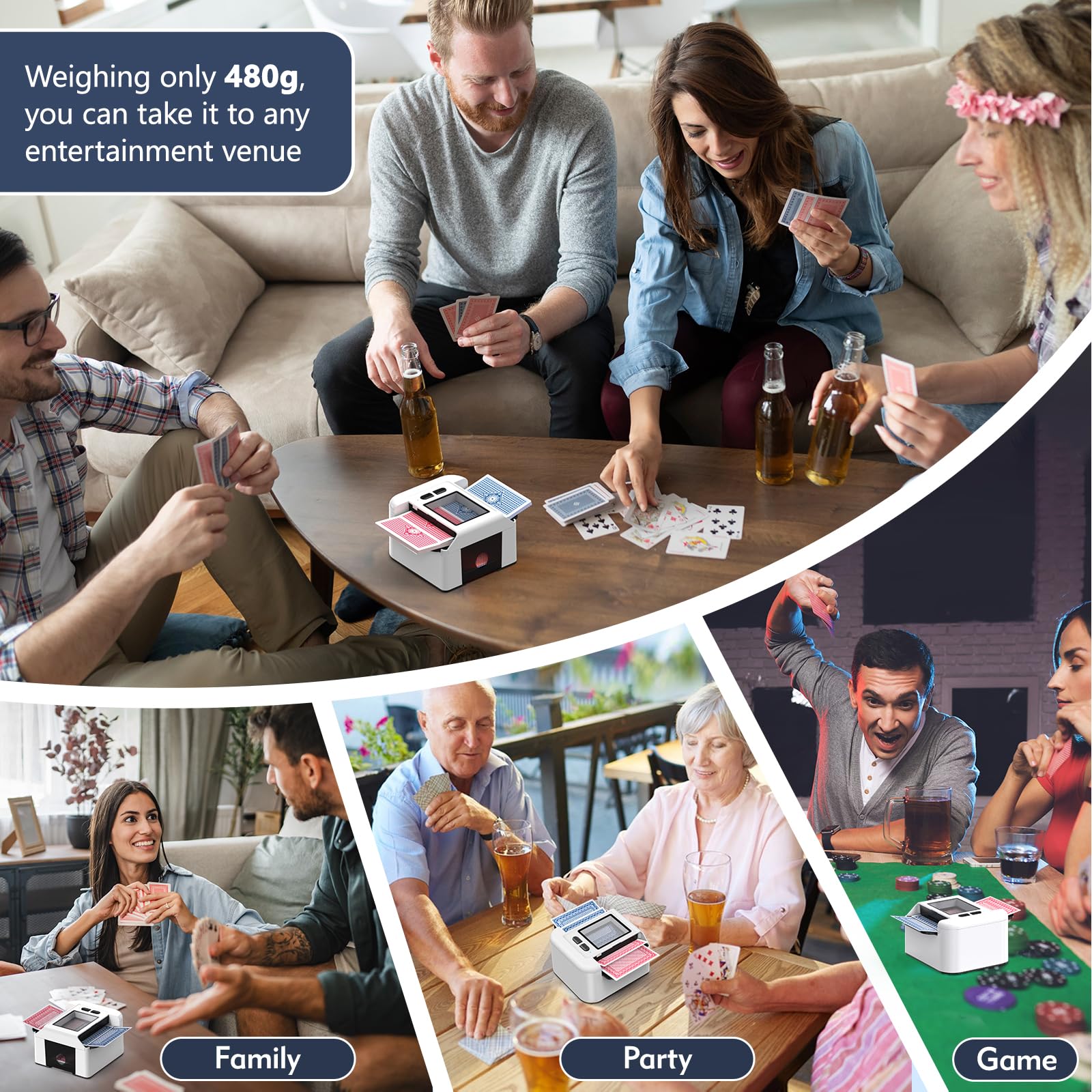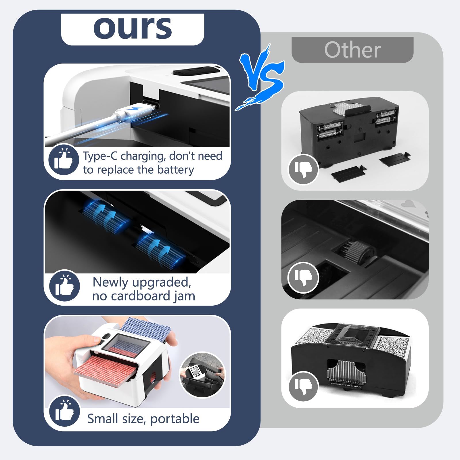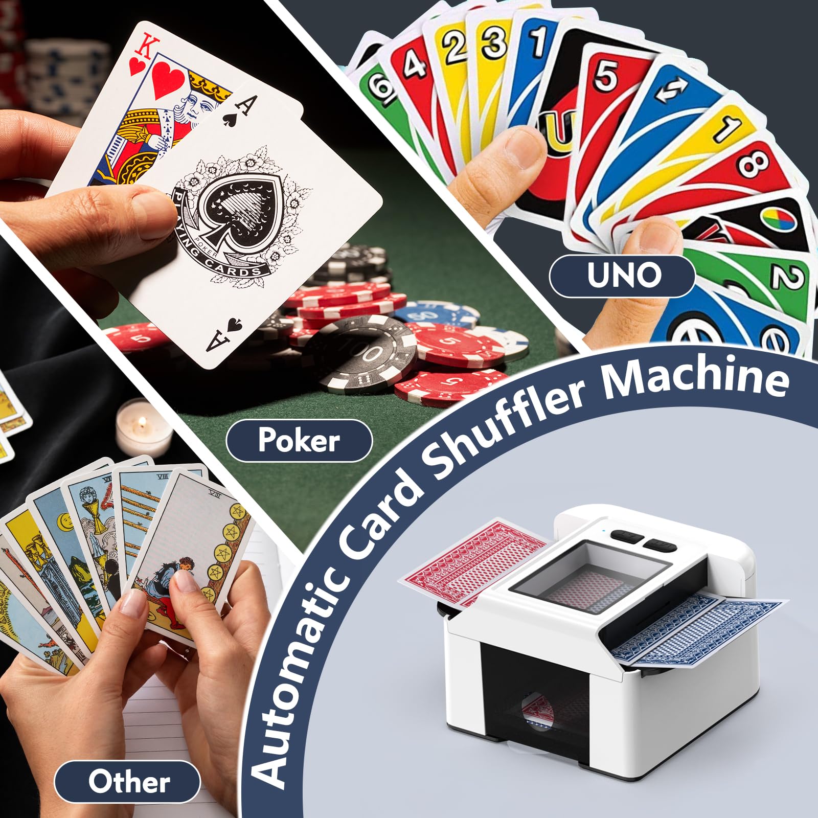 - Fast Shuffling without Jams: Three major upgrade designs of the automatic card shuffler make shuffling faster and smoother. Not only does it reduce shuffling time to 2.5 seconds, but it also significantly decreases the occurrence of card jams.