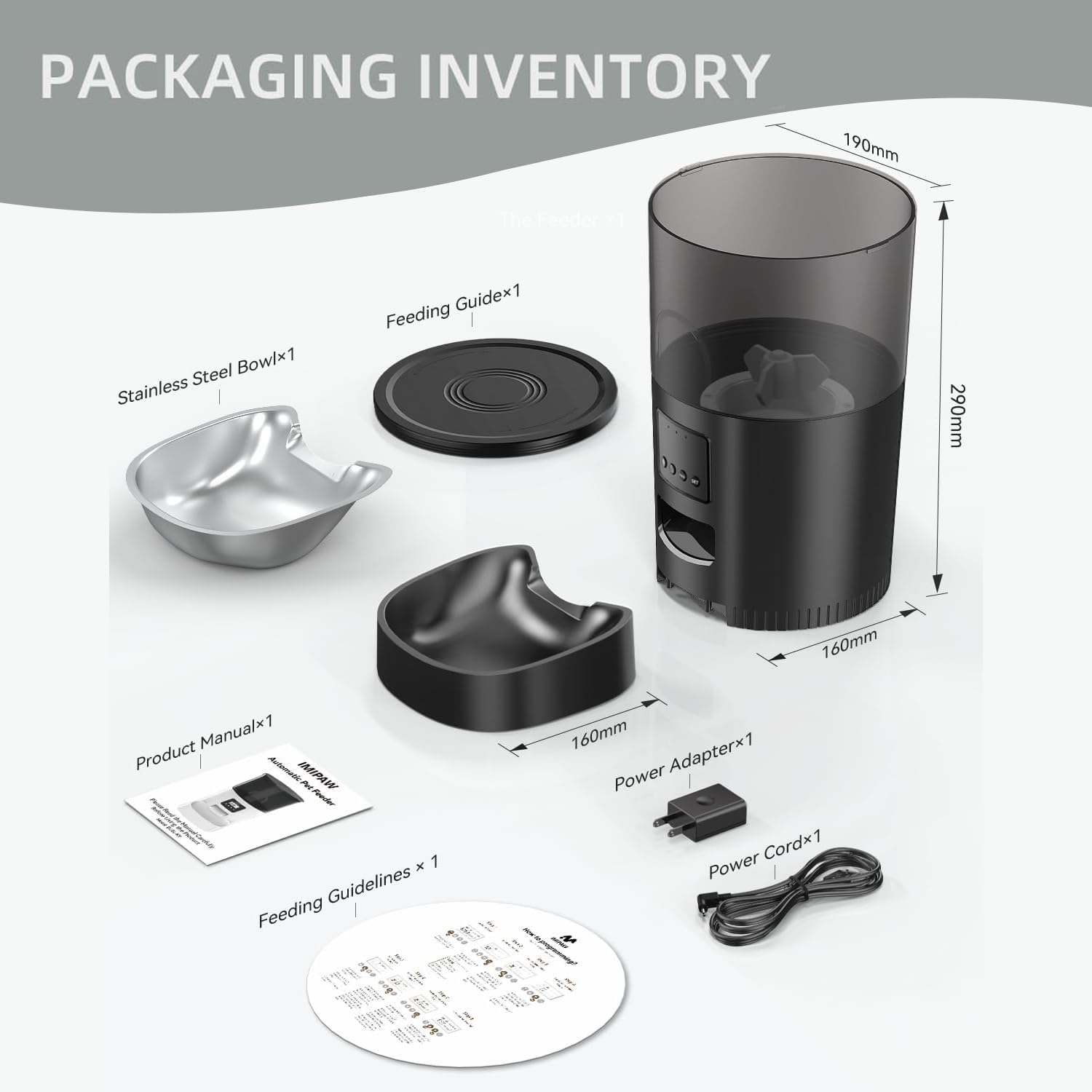 - Manual & App Flexibility – Dispense instantly or follow preset schedules via phone or manual button for seamless mealtime control.