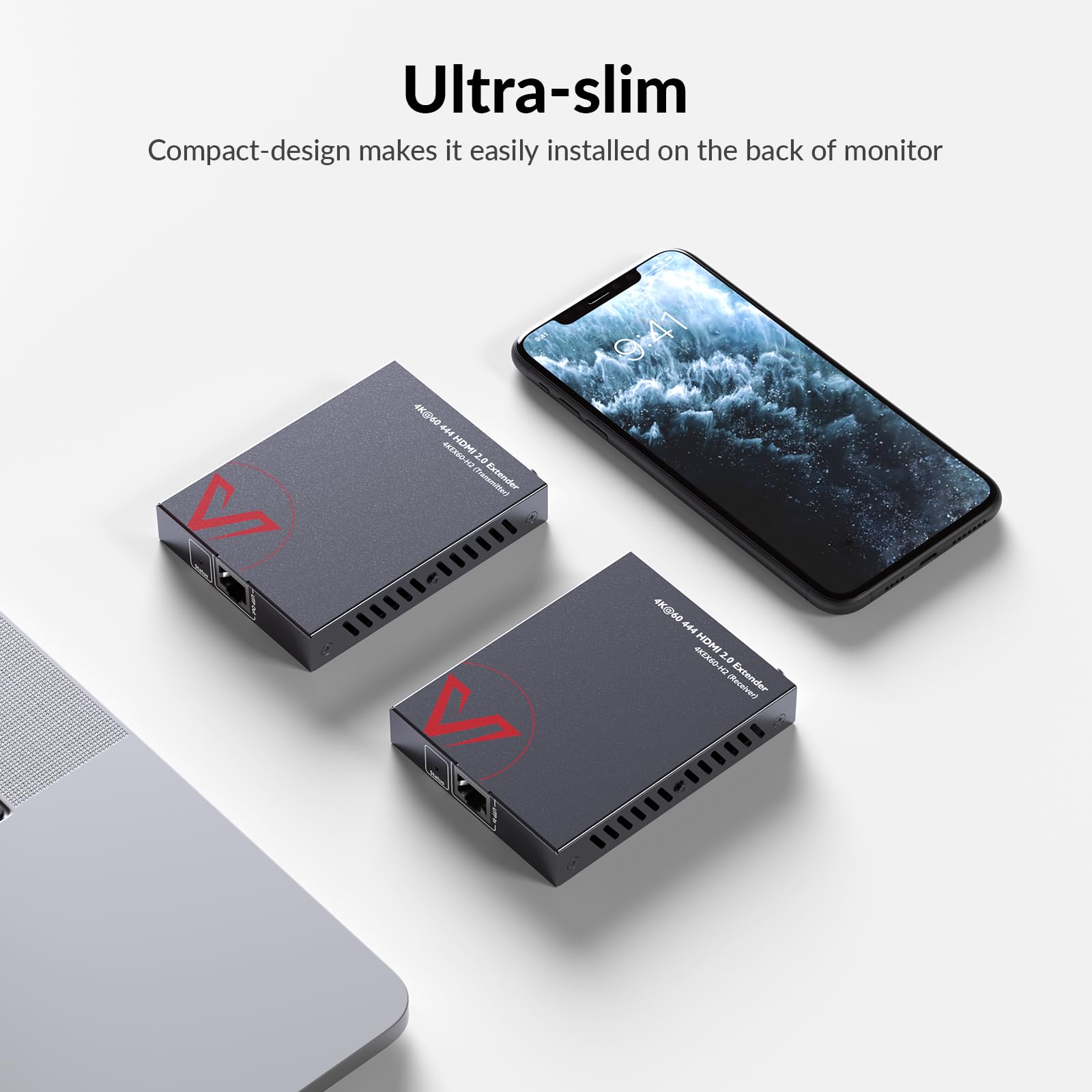 - Stable & Fast Transmission up to 50M: stable and fast transmission at the bandwidth of 18Gbps, ZERO Latency. It extends up to 50M for 1080p signal over cat6/6a/7 cable, 35M for 4K signal.