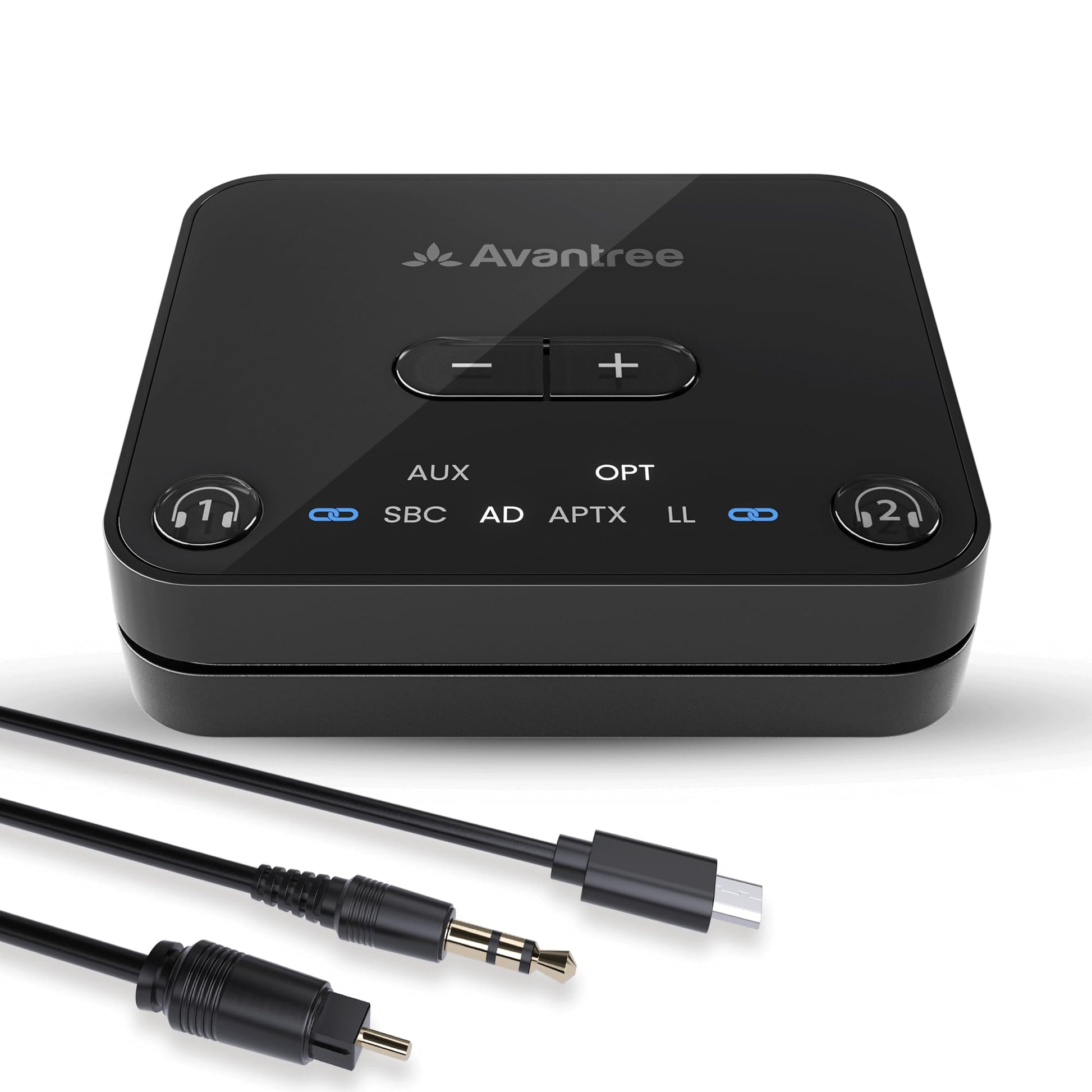 Avantree Audikast 3 - Bluetooth 5.3 Transmitter for TV with Optical or AUX Audio Output Port, aptX-Adaptive, Dual Link for 2 Headphones, and 100ft Long Range