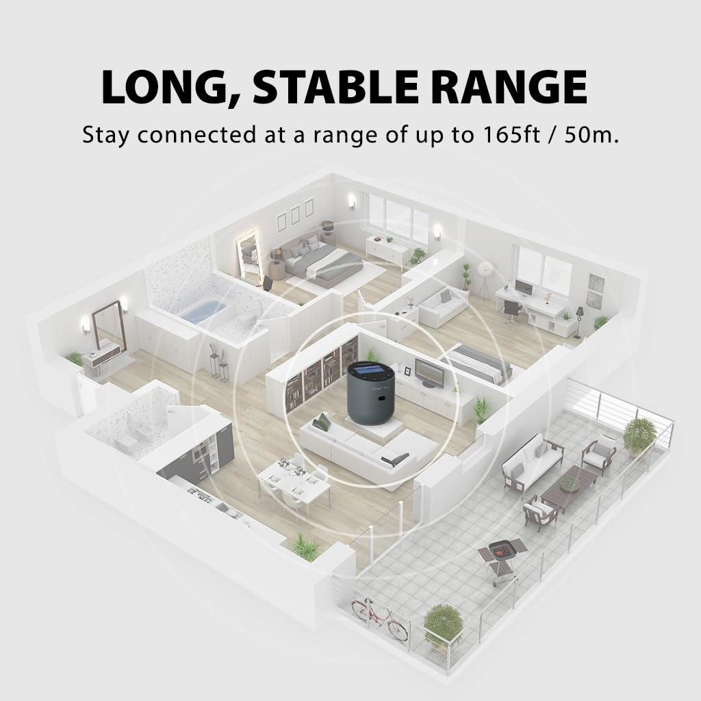 - [EXTENDED RANGE] Enjoy uninterrupted sound up to 164ft/50m away from the transmitter. Adjust volume from afar with the included remote control.