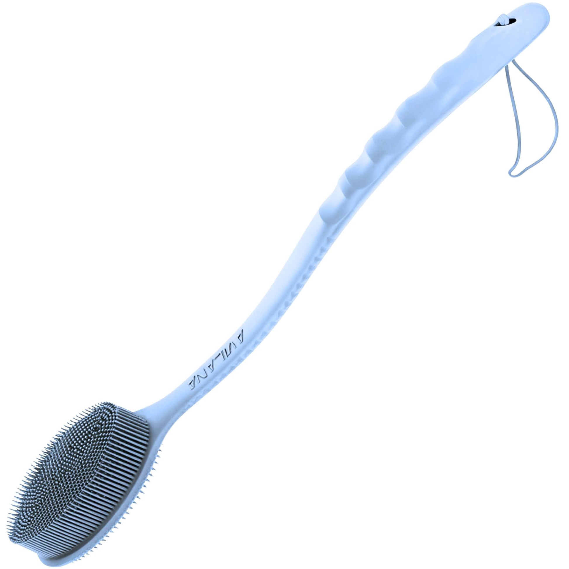 Avilana Silicone Body Scrubber - Food Grade & Lab Tested, Gentle Exfoliating Shower Brush for All Skin Types, Hygienic Quick-Dry Loofah Alternative, BPA-Free Body Brush (Blue, Long Handle)