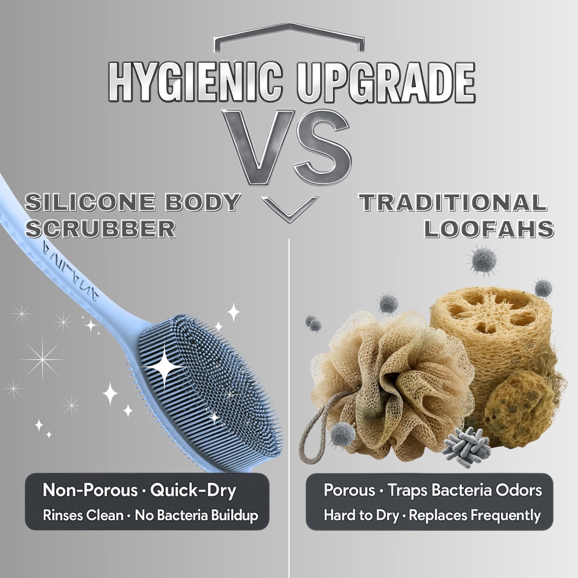 - Superior Hygiene & Quick-Dry - Non-porous silicone prevents bacterial growth, soap buildup, and odors. Built-in hanging loop promotes rapid air-drying for lasting freshness.