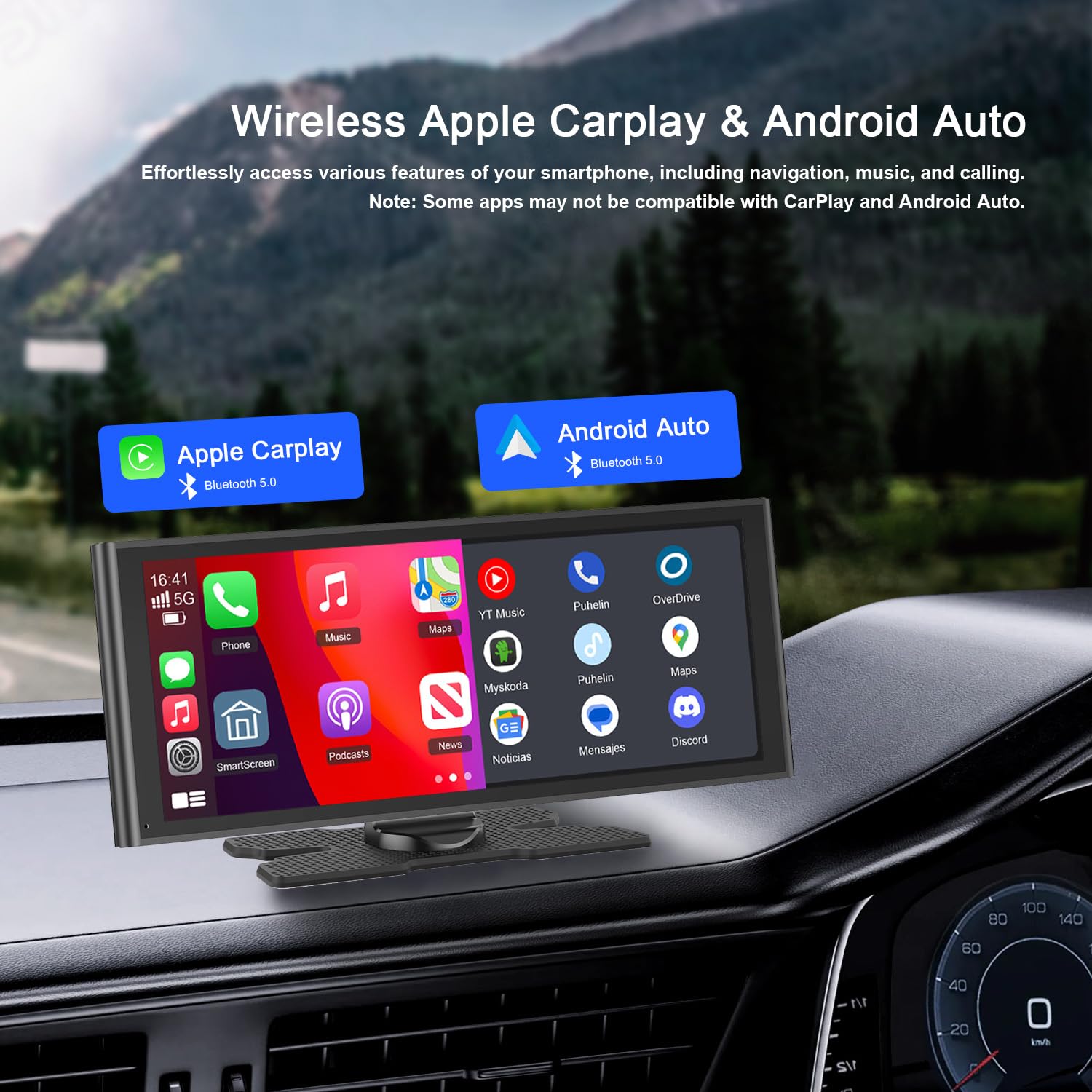 - Wireless Apple CarPlay & Android Auto Screen Compatibility:You can connect your smartphone to the apple carplay screen or android auto screen via Bluetooth and Wi-Fi. After setup, your smartphone will automatically connect to the carplay screen every time you enter the car—no reconfiguration needed. Enjoy voice control with Siri or Google Assistant, listen to music, navigate, and more.Note: 1. Does not include a front camera; 2.If fails to automatically reconnect modes (e.g. CarPlay, Android Auto) or repeatedly restarts after reboot, reach outo to us immediately for resolution