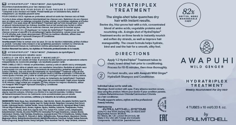 Details: Paul Mitchell Awapuhi Wild Ginger The HydraTriplex Treatment features triple action hair technology to hydrate, bind and seal the hair with moisturizing ingredients. Included are proven hair-restoring ingredients such as amino acids, vegetable proteins and nourishing oils to make dry, frizzy hair softer and more easily manageable. Try this advanced technology and achieve hair that is luxurious, polished and silky-smooth. Hair Type: Ideal For Dry + Frizz-Prone Hair. Benefits: Color Safe. Paraben Free.