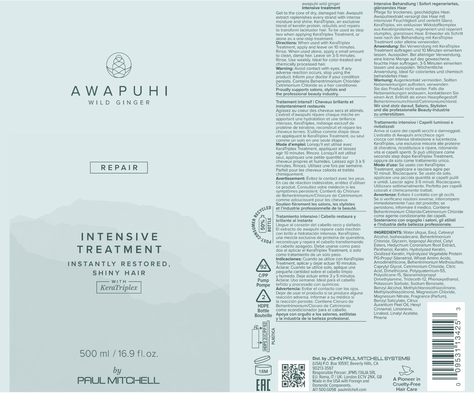 Awapuhi Wild Ginger by Paul Mitchell Intensive Treatment, Rebuilds + Repairs, For Dry, Damaged + Color-Treated Hair, 500 ml