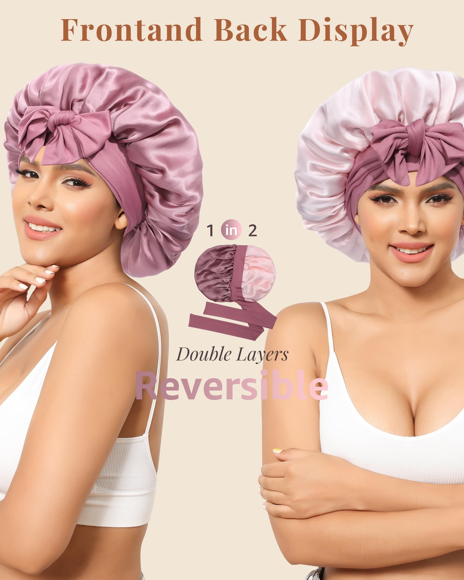 - REVERSIBLE DESIGN: With a two-layer reversible design, this hair bonnet can be worn in two different colors/patterns to match any sleepwear or mood