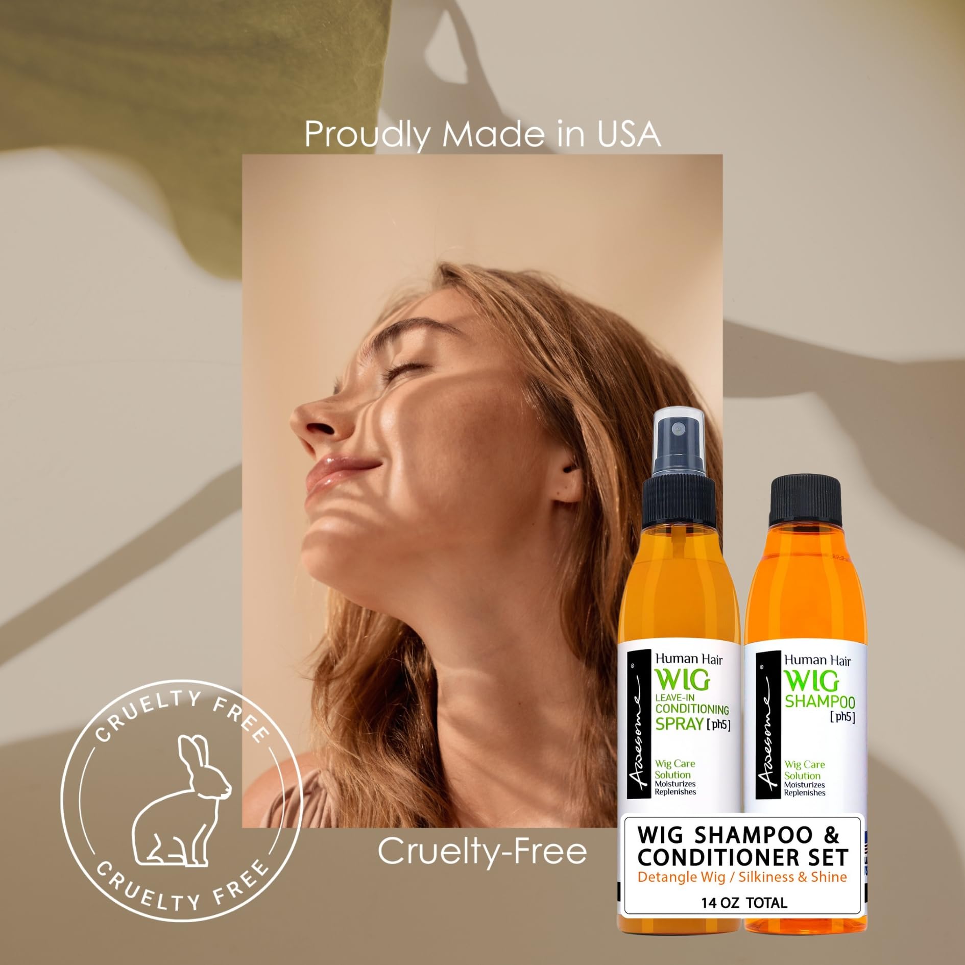Awesome Human Hair Wig Care Set, Premium Shampoo & Leave in Conditioner, Detangles, Promotes Body & Volume, Silkiness & Shine, Easy Combing, 7 fl oz