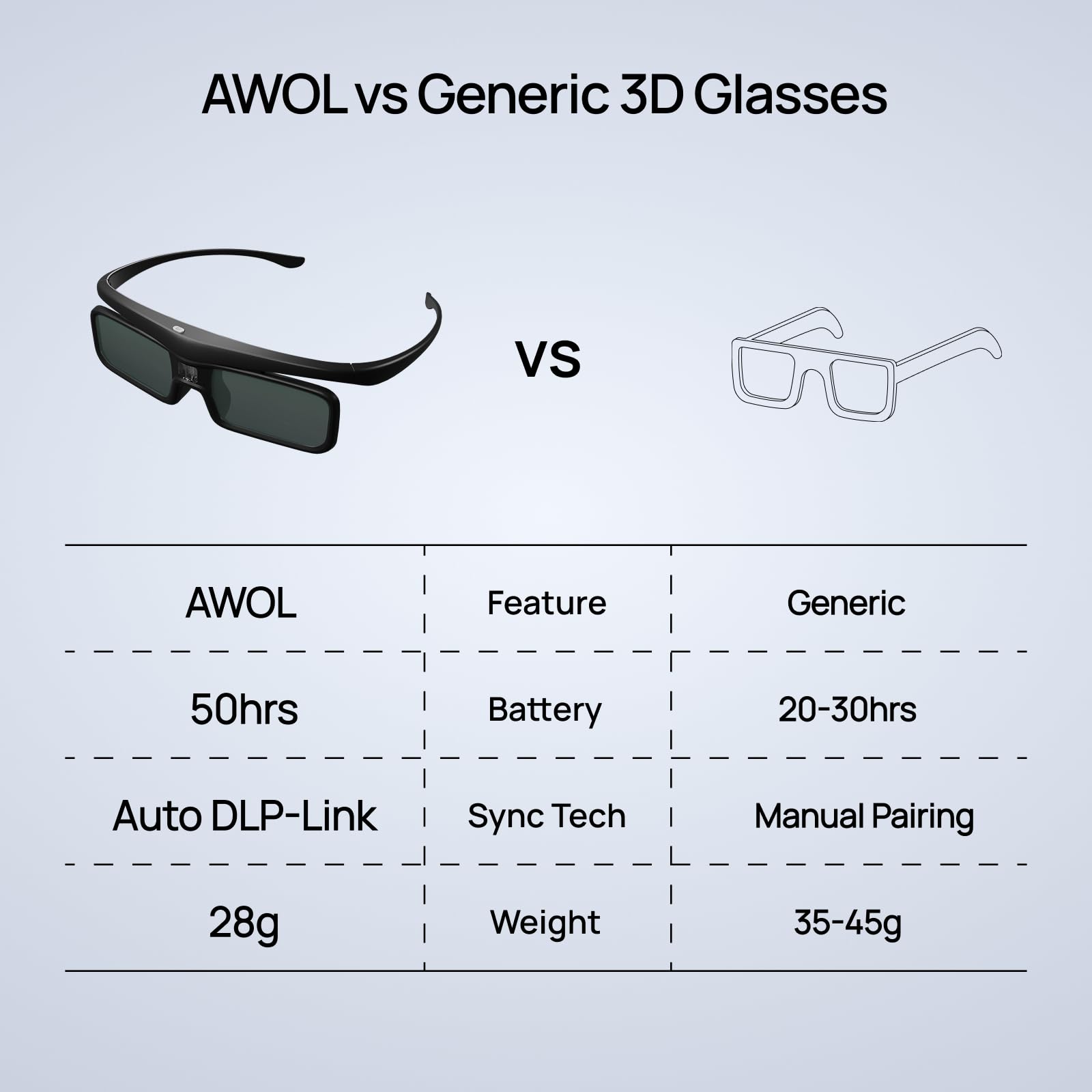 - Compatible with AWOL VISION LTV-2500, LTV-3000 Pro and LTV-3500 Pro, Vanish TV & other DLP-LINK 3D projectors. With very few simple settings, you will have an immersive 3D 4K home theater with your AWOL VISION
