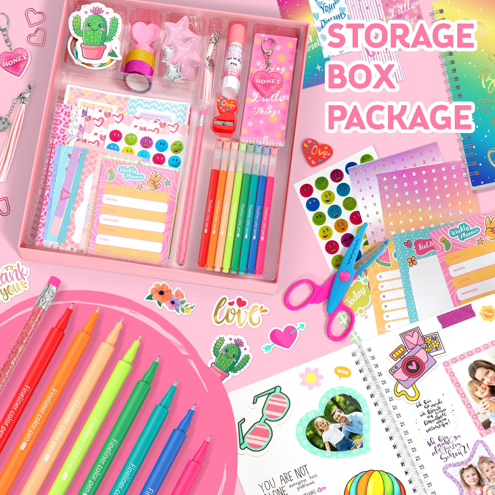 - 【UNLEASH YOUR CREATIVITY】Our art supplies stationery set is great for self-expression and creative exploration, Offering hours of imaginative, creative play. It's very suitable for journaling at home, taking notes in class or doodling in the car. Organizes your thoughts, lists, feelings, or memories with this girls diary set, unleashing your imagination and enhancing the beauty of your diary.