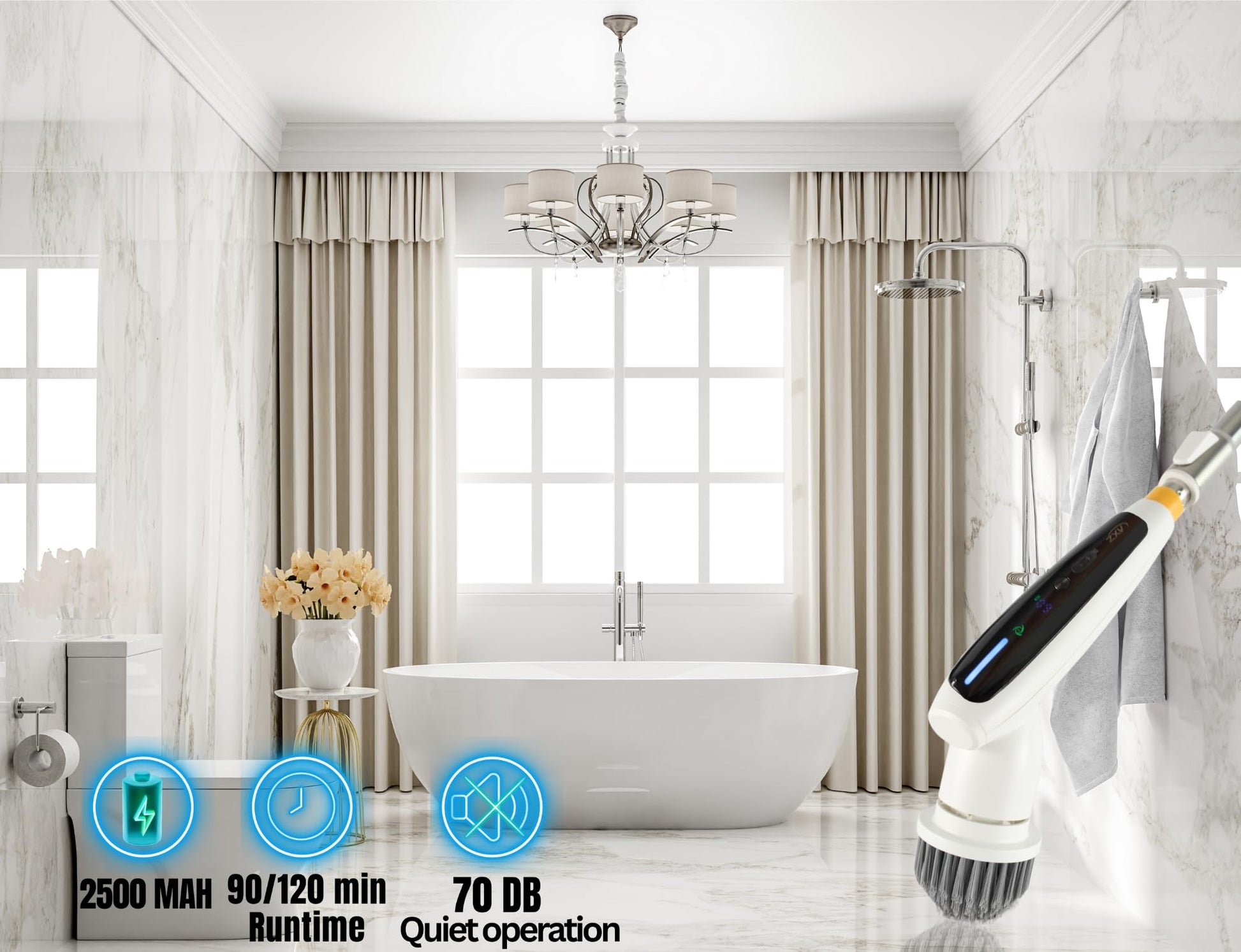 - [Efficient & Versatile Cleaning]- Upgraded Electric Spin Scrubber comes with 8 interchangeable brush heads for versatile cleaning across bathrooms, kitchens, floors, and more. Tackle grout, tubs, sinks, tiles, car wheels, and tight spaces with ease.
