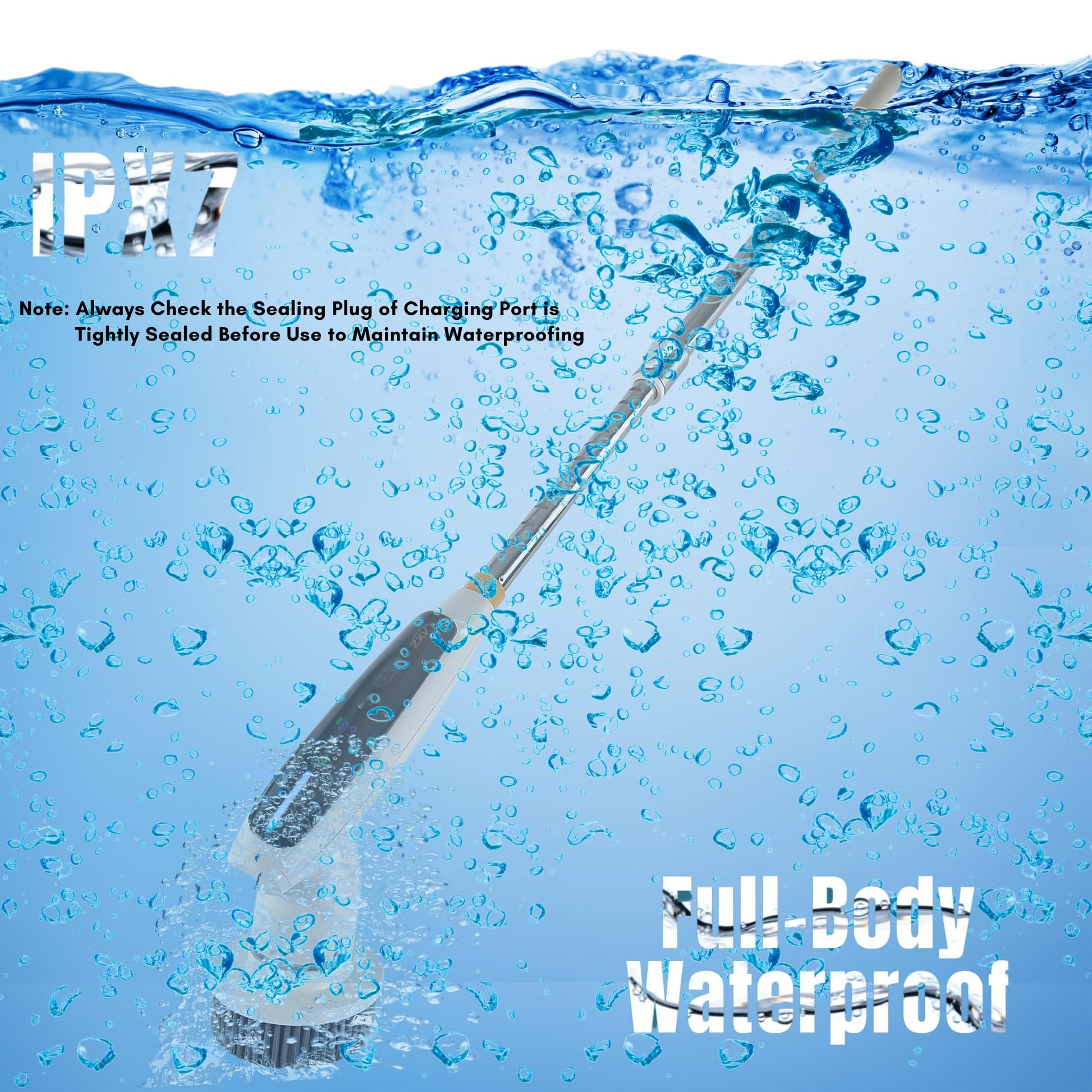 - [IPX7 Waterproof & Durable]- Designed for wet environments, this scrubber is fully IPX7 waterproof, making it safe for use in the shower and other water-prone areas. Built with high-quality materials for long-lasting performance.